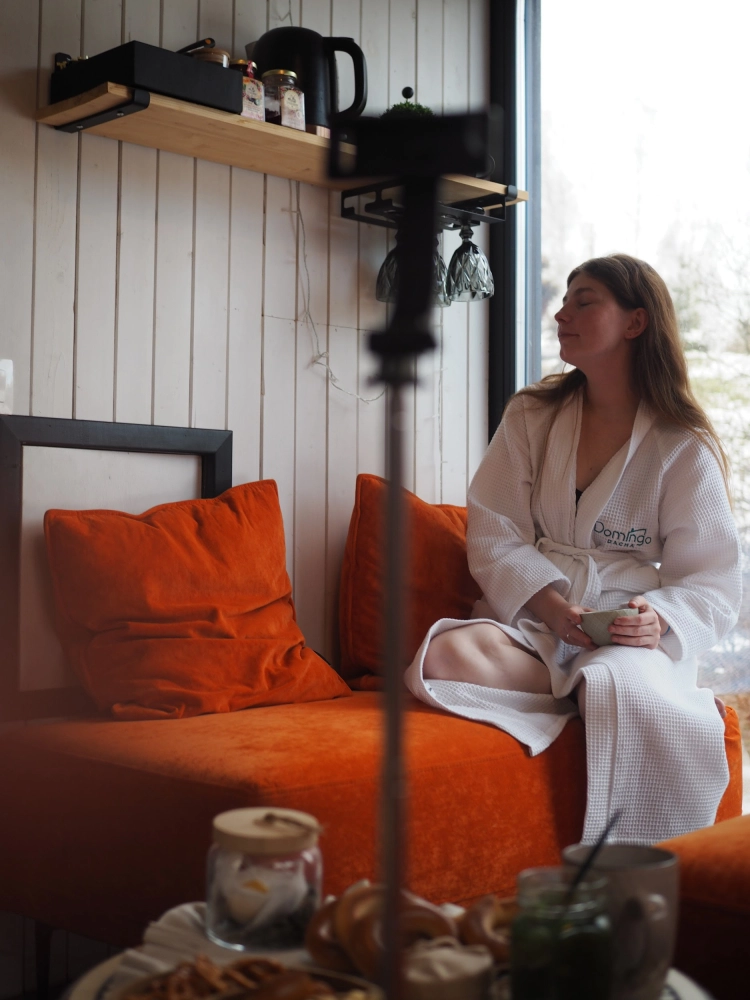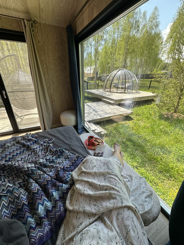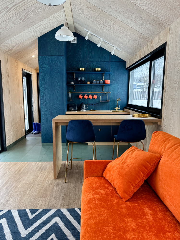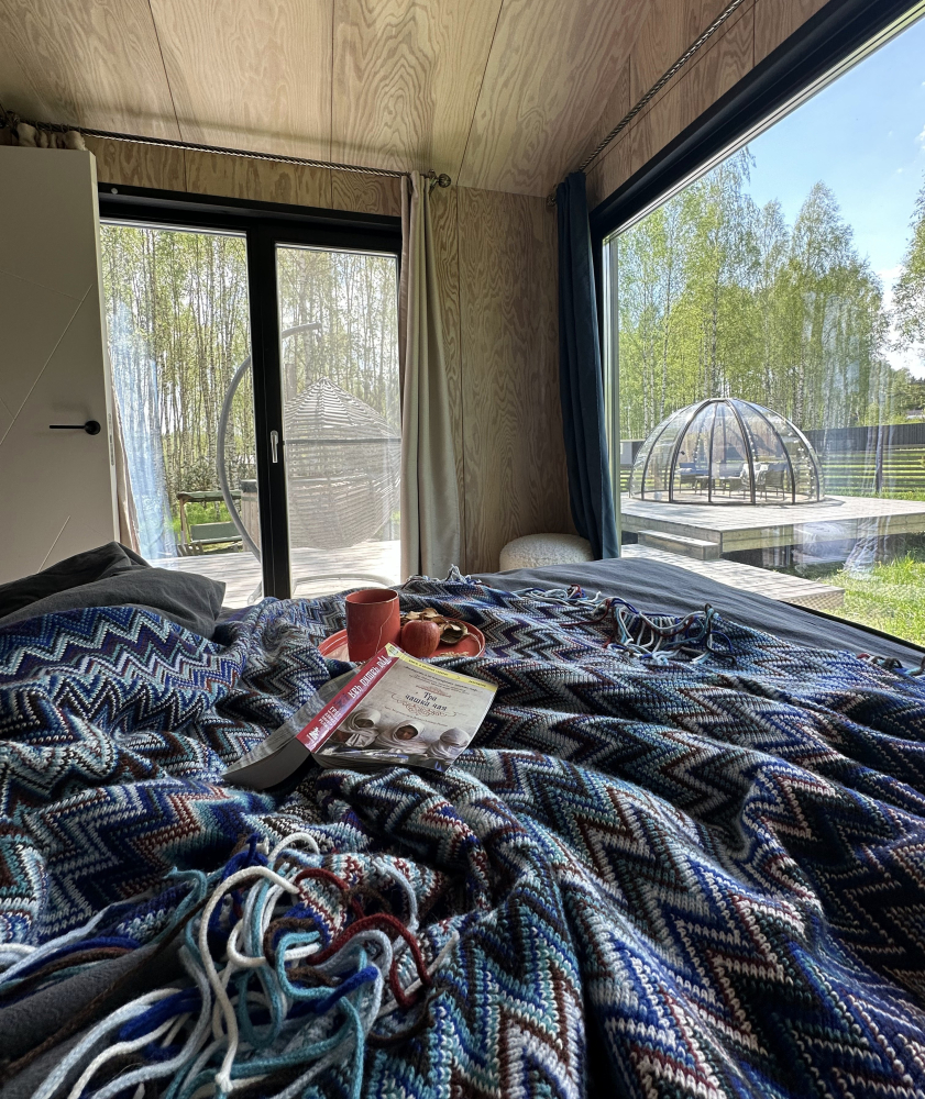 Выберите себе подходящую по настроению компанию (дом рассчитан до 4х человек): быть может вам захочется приехать парой или в одиночку, парой с ребенком или с парой друзей. У вас будет просторная кухня-гостиная с панорамными окнами, раскладным диваном, печью-камином, а также уютная спальня с двуспальной кроватью с ортопедическим матрасом. По запросу установим детскую люльку.