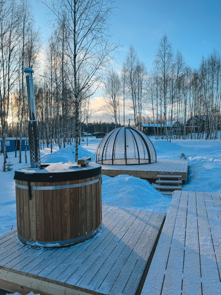 Попробуйте новый вид парения. Бочка из лиственницы растапливается дровами. Стоит на террасе перед домом у большинства домов, также есть фурако рядом с Баней.