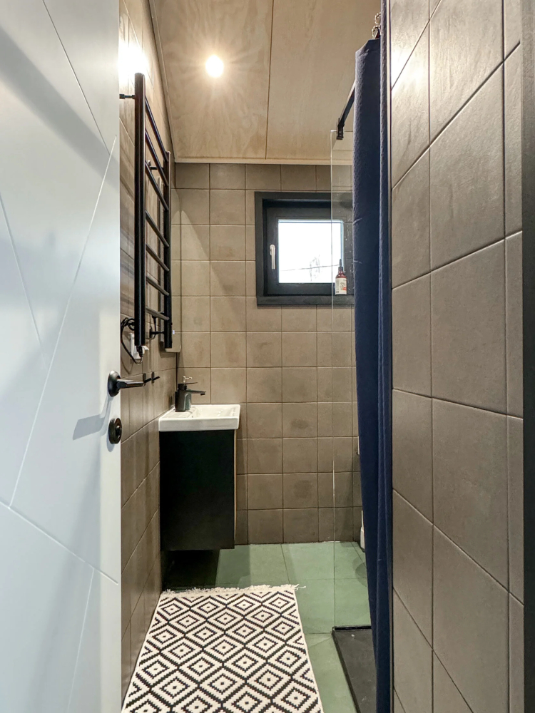 Ванная комната с туалетом, душевой кабиной и теплым полом