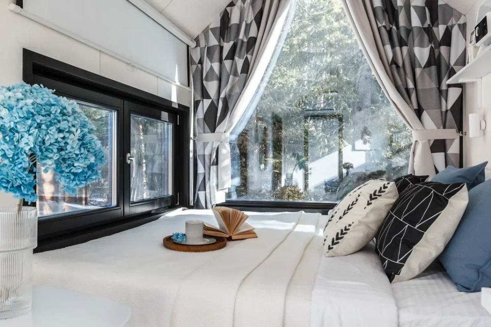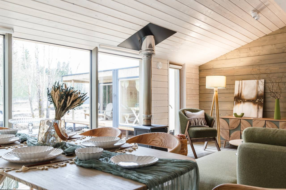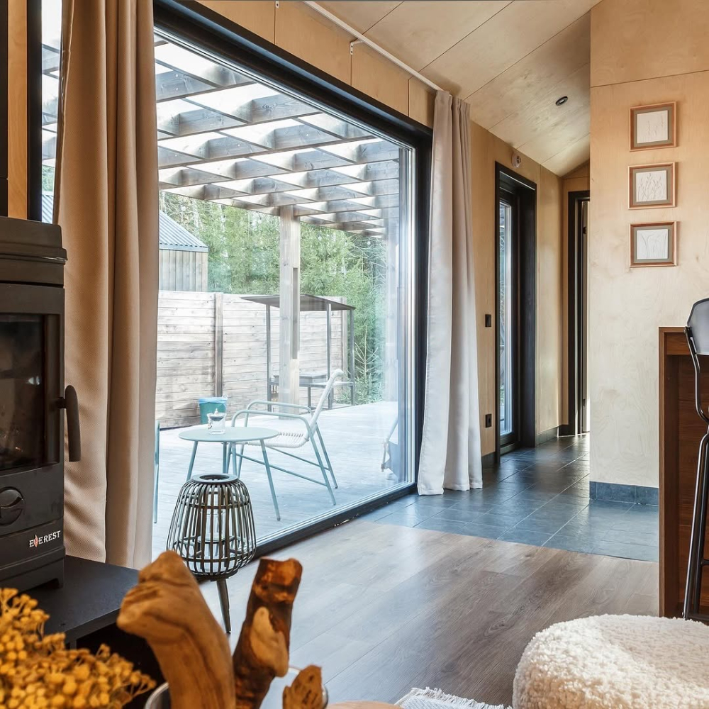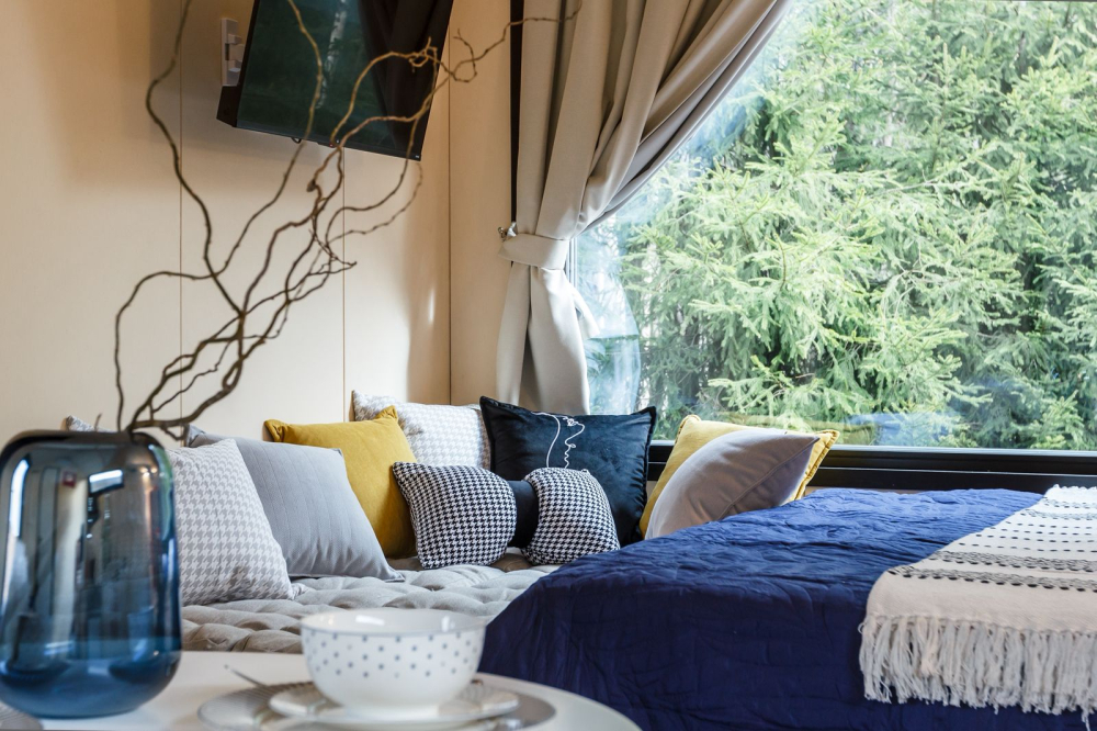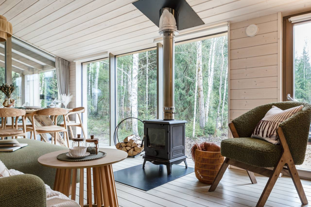 в котором через панорамное окно виден лес