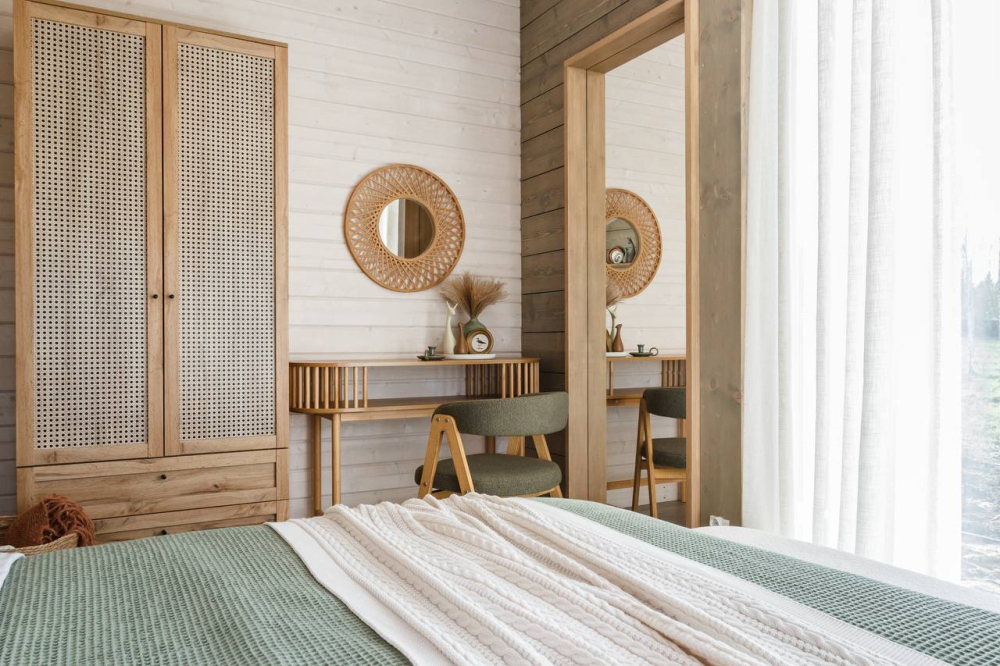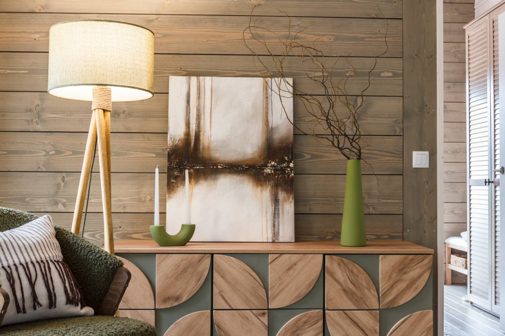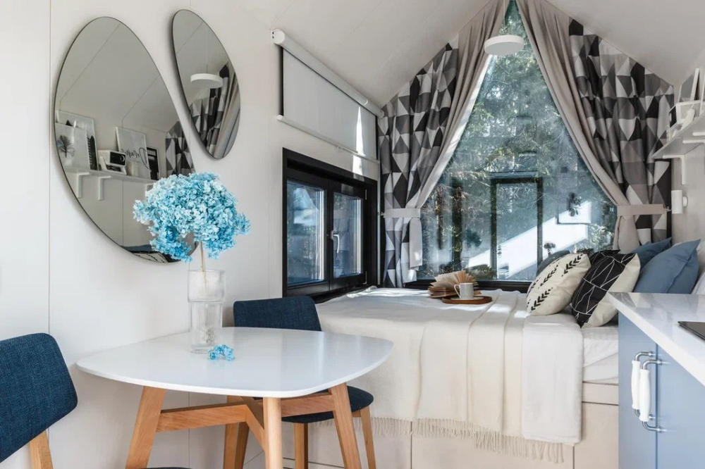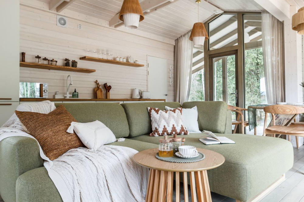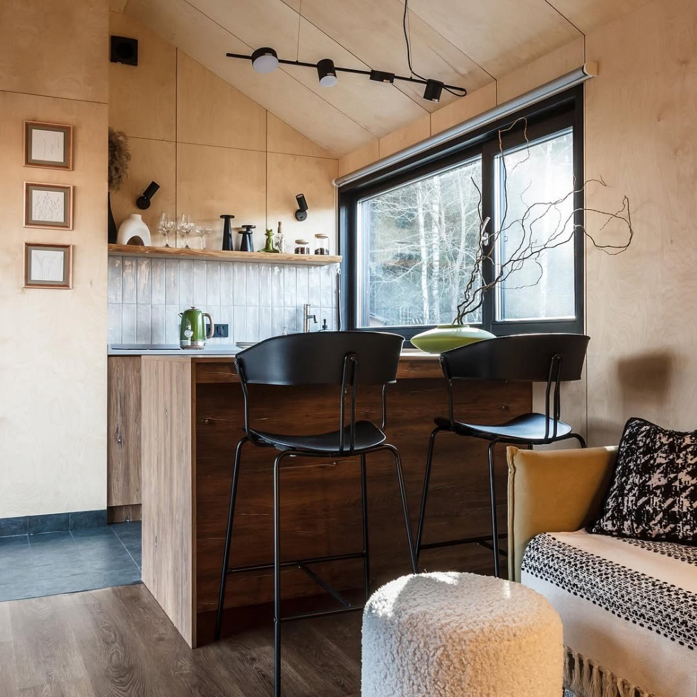 в котором через панорамное окно виден лес