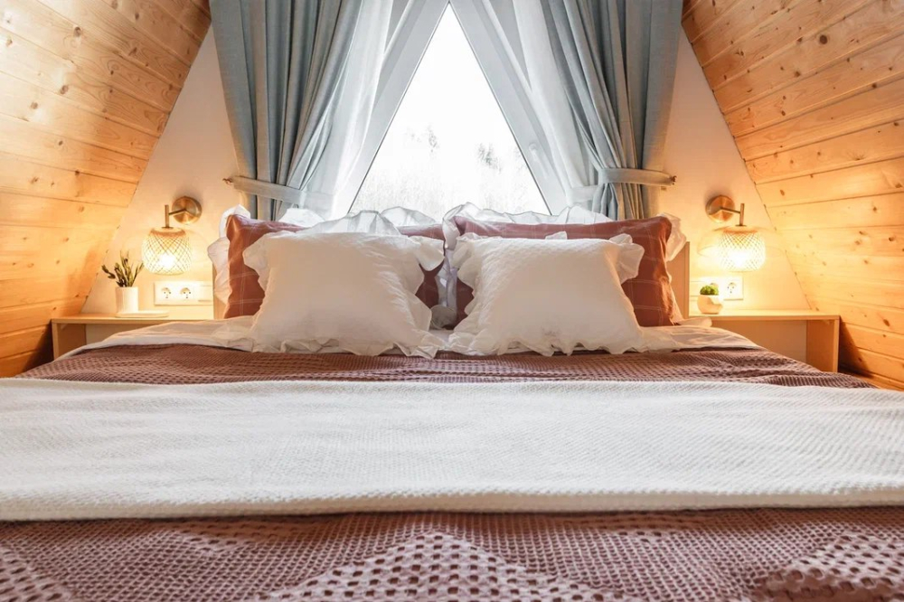 "Розовый" А-фрейм Треугольный двухэтажный уютный а-фрейм