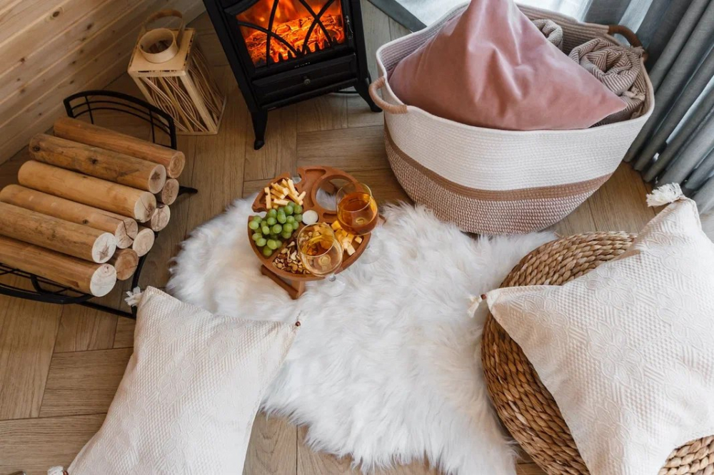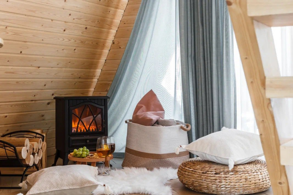 - Персиковый дом с камином