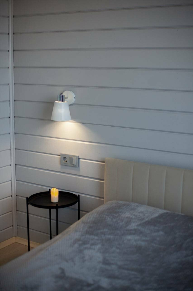 "Белый" дом Необычный мини-дом с минималистичным дизайном внутри и собственной территорией, где есть мангал, кострище, зона отдыха, терраса и купель. Все это с видом на дикий лес.