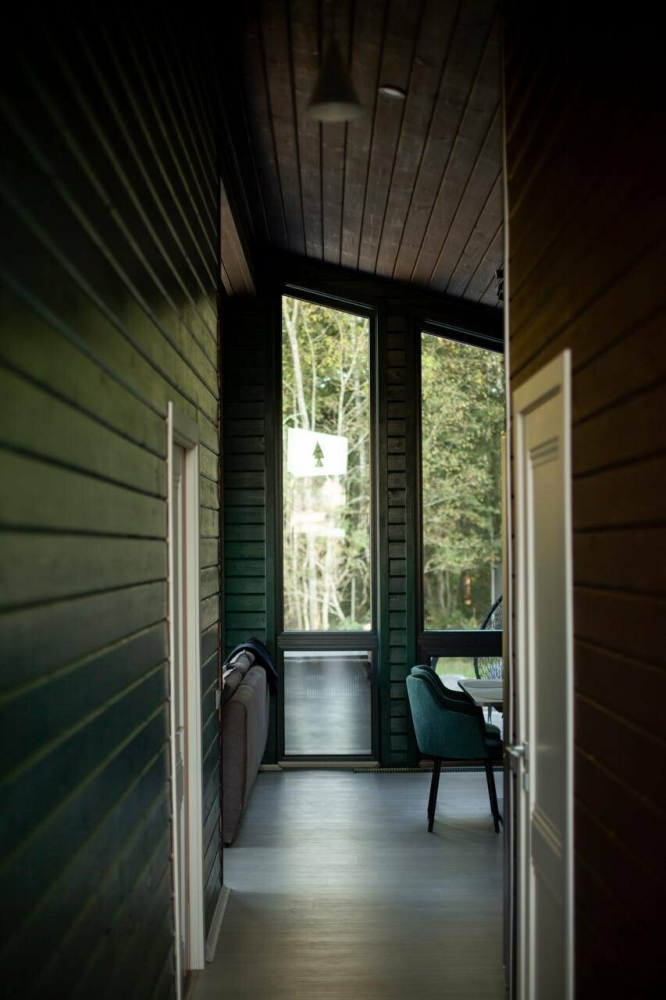 "Зелёный" дом Необычный дом двухкомнатный с дровяным камином с уютным дизайном внутри со своей индивидуальной территорией, где стоит мангал, кострище, зона отдыха, терраса и купель.Все это с видом на дикий лес.