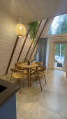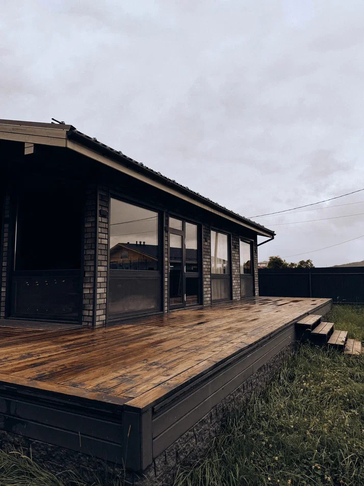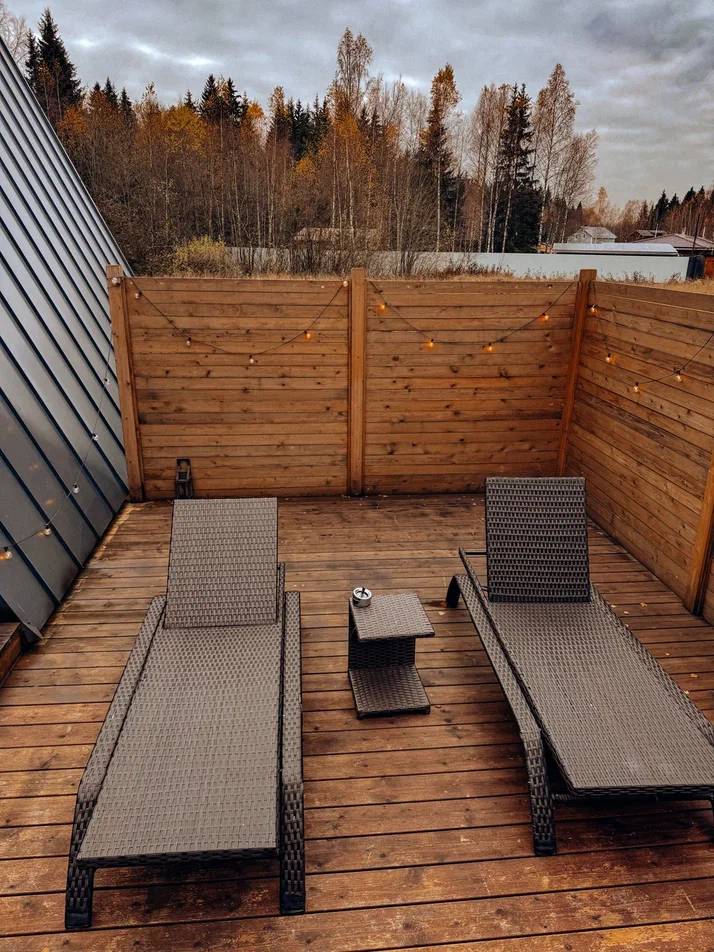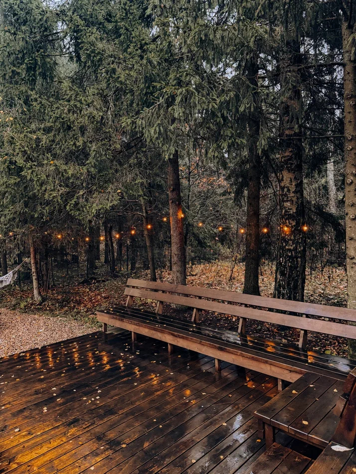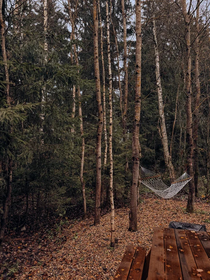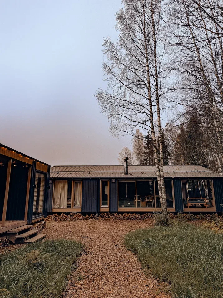 Большой дом "Форест"-отдельный участок Большой дом в стиле лофт, вмещающий до 6 спальных мест, с собственной закрытой территорией, где есть мангал, кострище, зона отдыха, терраса и купель. Все это с видом на дикий лес.