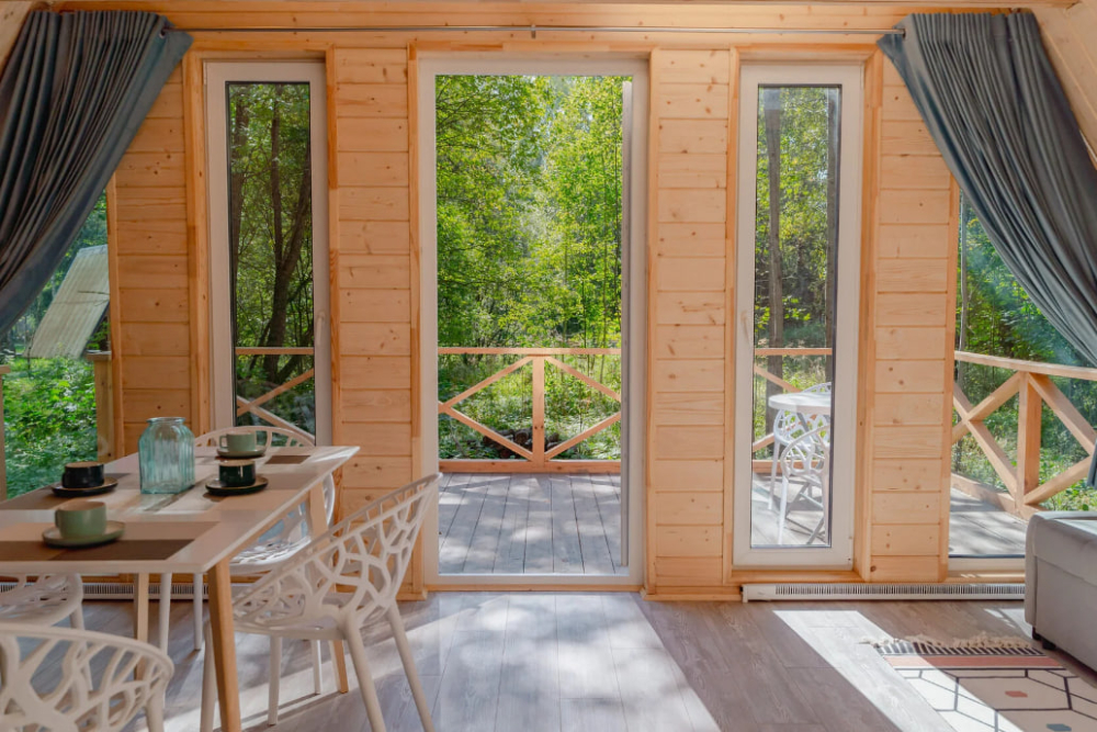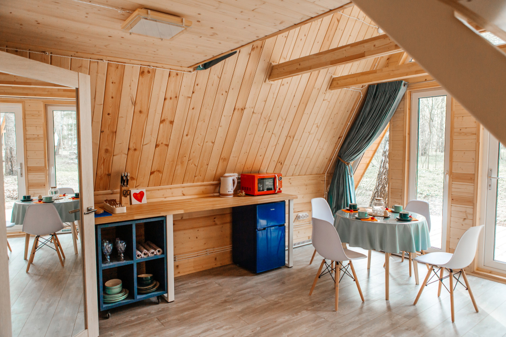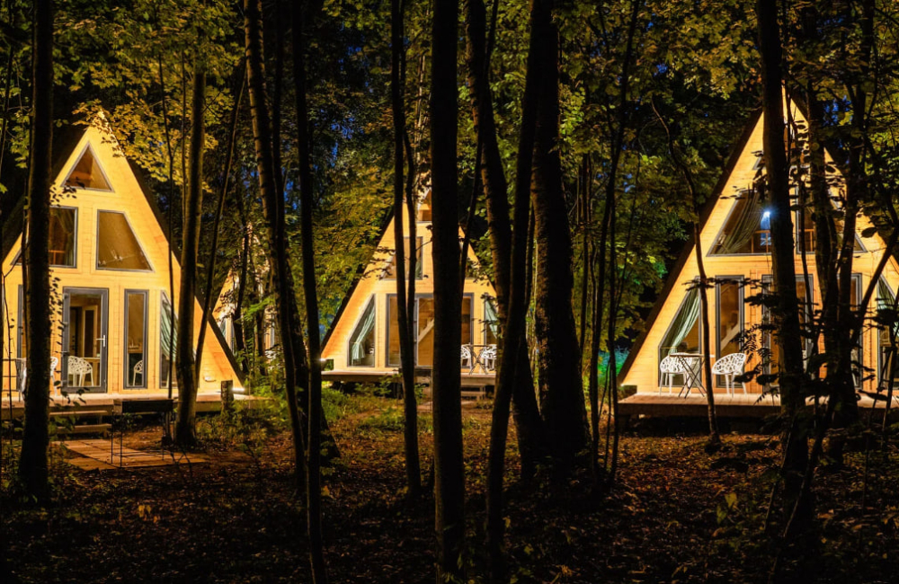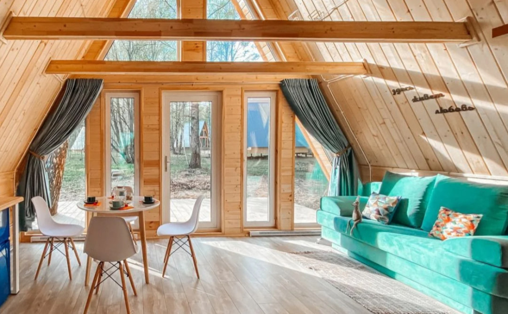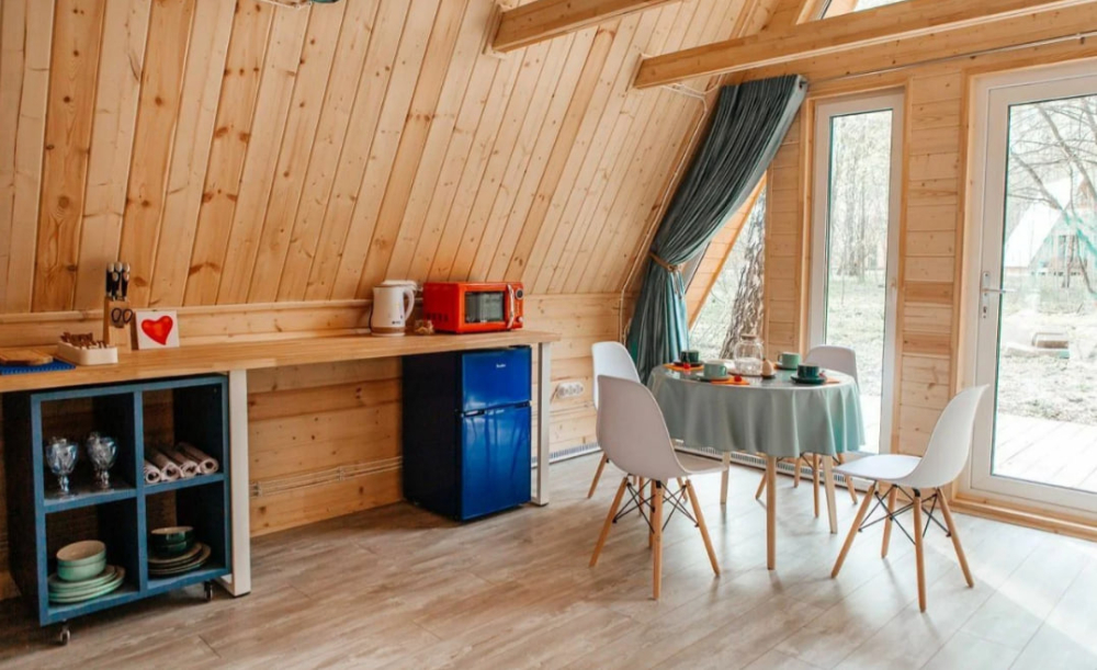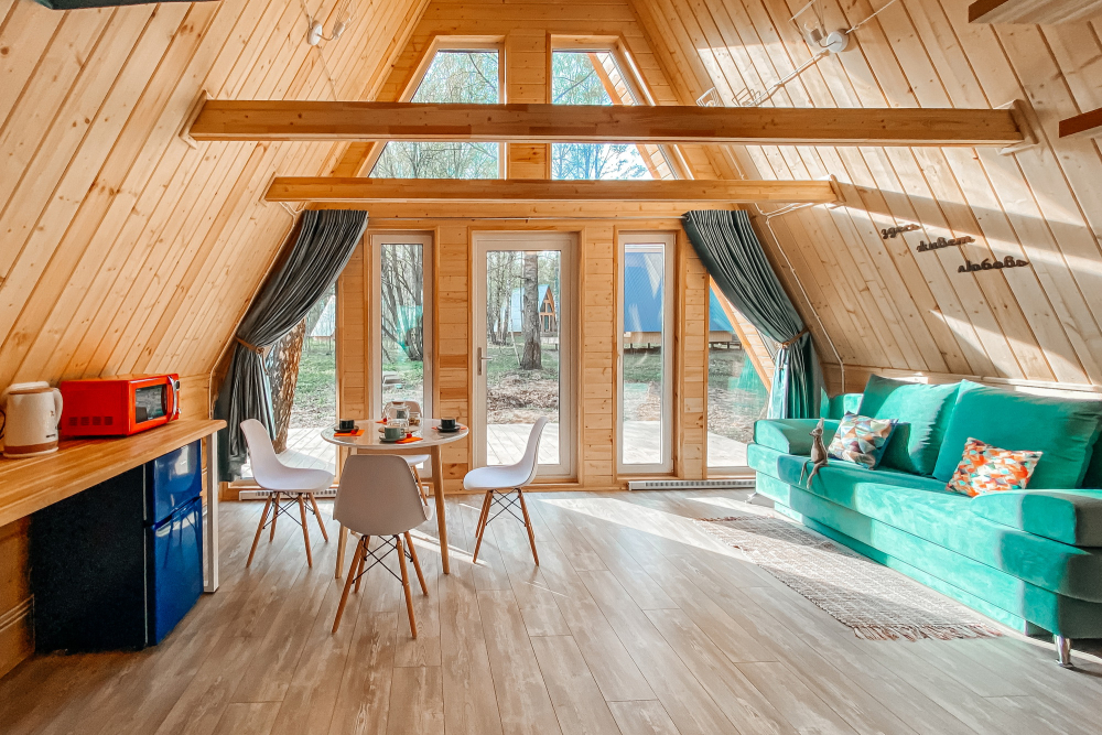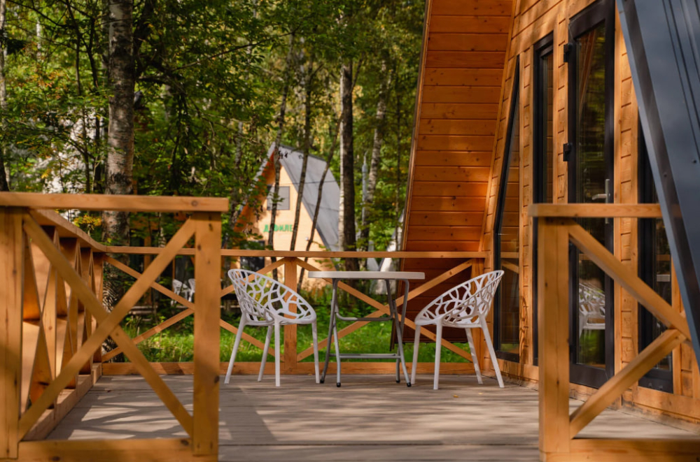 Вас ждут уютные дома А-образной формы с панорамными окнами, персональными верандами и собственной мангальной зоной.