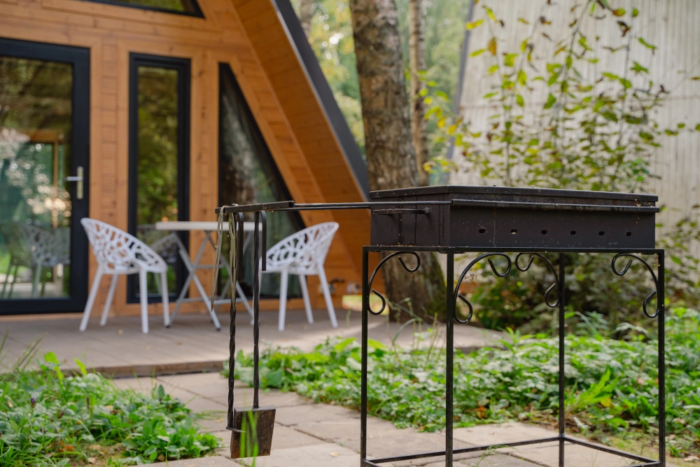 A-frame дом площадью 38 м2 -Дом с панорамными окнами, террасой, мангальной зоной и видом на лес.