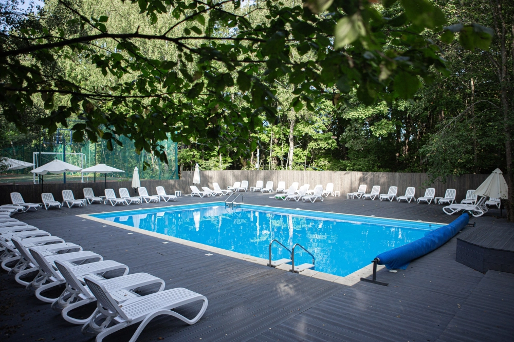 - Бассейн среди сосен (в летний сезон): освежитесь и заряжайтесь прямо в лесу.