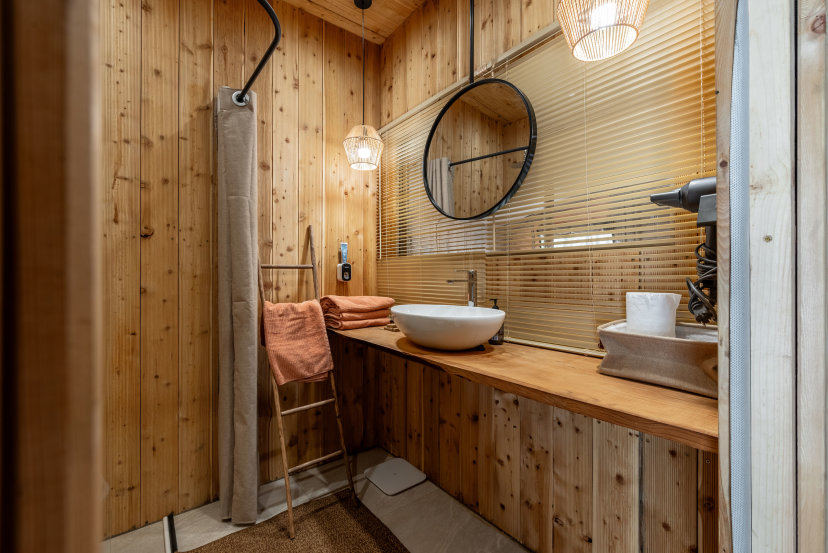 На территории расположены сказочные домики с инстаграмным интерьером из мебели ручной работы, декора с Бали, ковров и покрывал из натуральных материалов. Каждый домик оснащён собственной террасой, купелью фурако, зоной для отдыха и необходимыми современными удобствами. Также можно воспользоваться большим американским газовым грилем для приготовления любимых блюд.