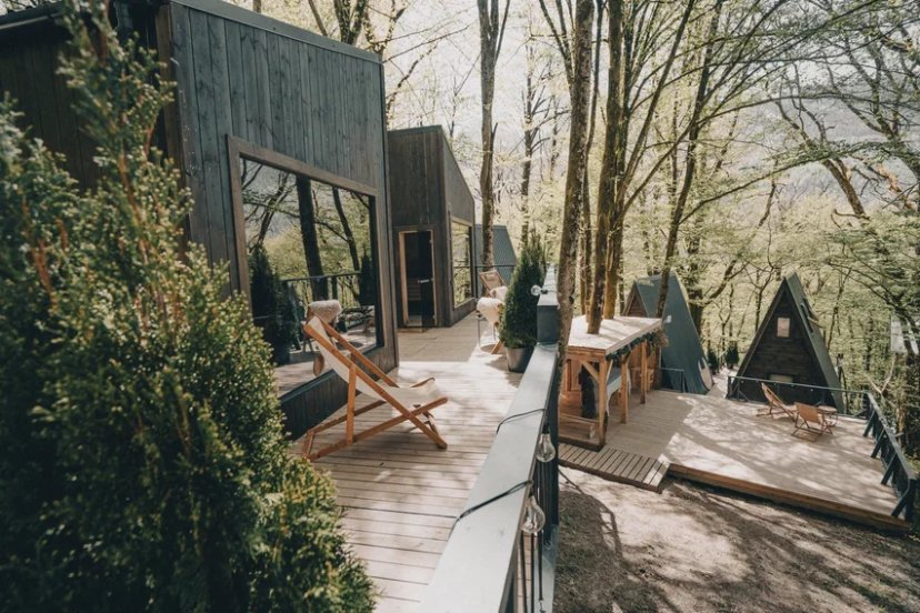 Современный объект размещения в шаговой доступности от Красной Поляны: 200 ступеней — и вы в сердце древнего леса с горными панорамами и чистыми ручьями.