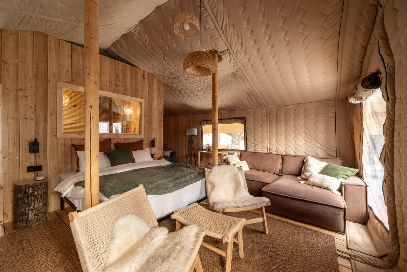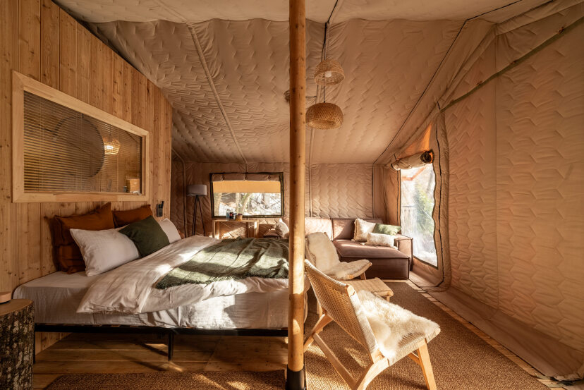 Сафари-шатёр: Шатёр с собственной баней, террасой, Wi-Fi и современными удобствами для размещения до 2 человек.