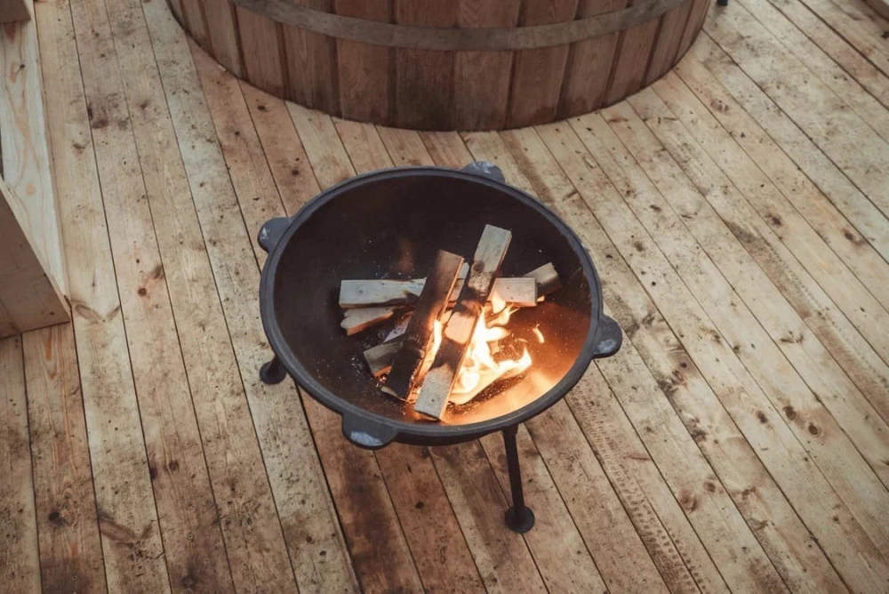Идеально до 4х человек. Это баня фурака в ней можно просидеть 3 часа эффект как от бани. Она топится 2 часа и будет оставаться горячей около 8 часов. Особое удовольствие смотреть кино прямо из купели. Мы подготовим проектор и полотно для просмотра кино в купели — дополнительная стоимость проектора и полотна – 2000 руб./сутки. Фильмы оплачиваются отдельно.