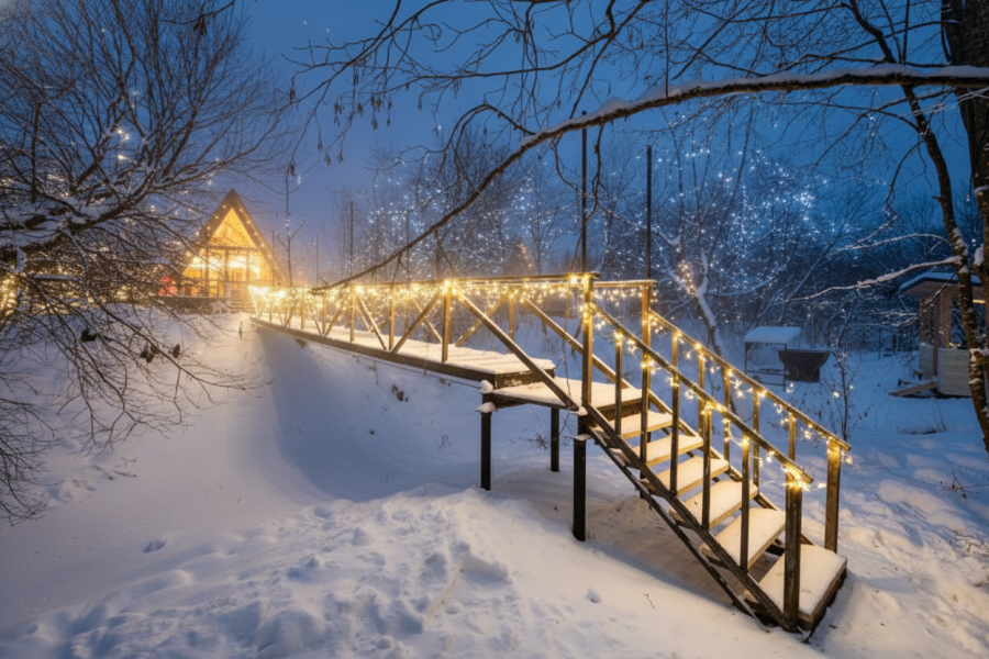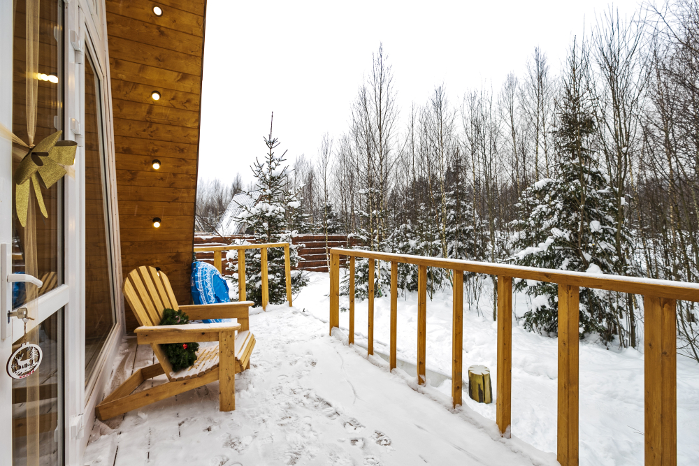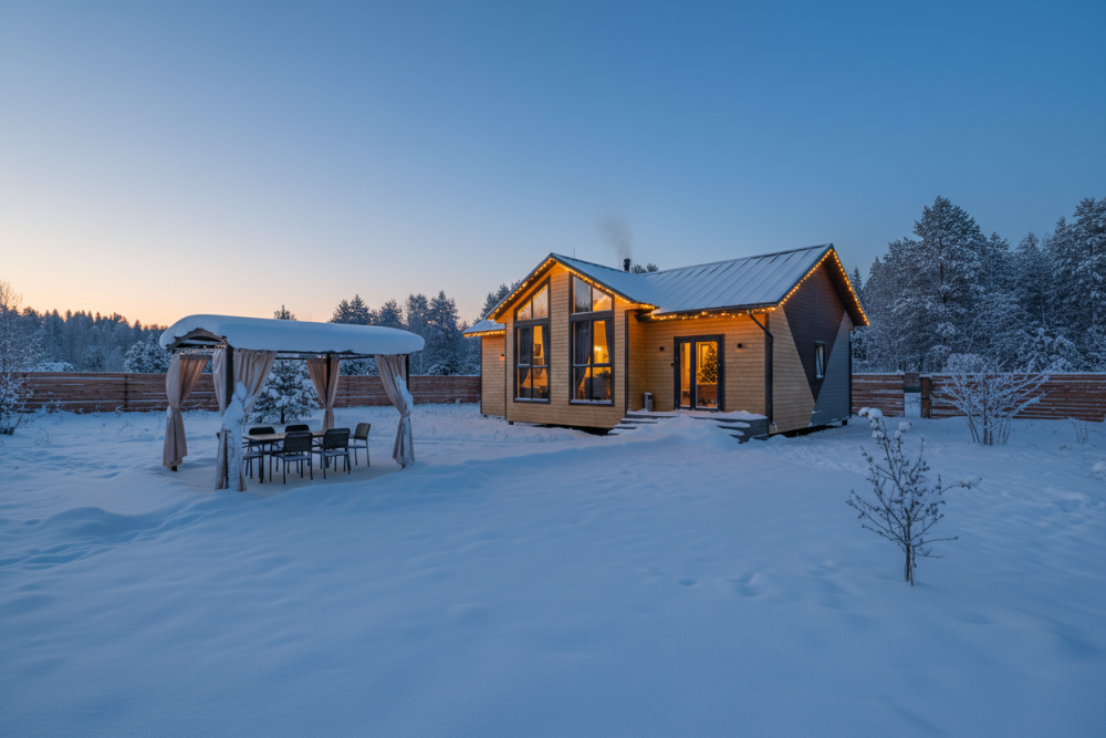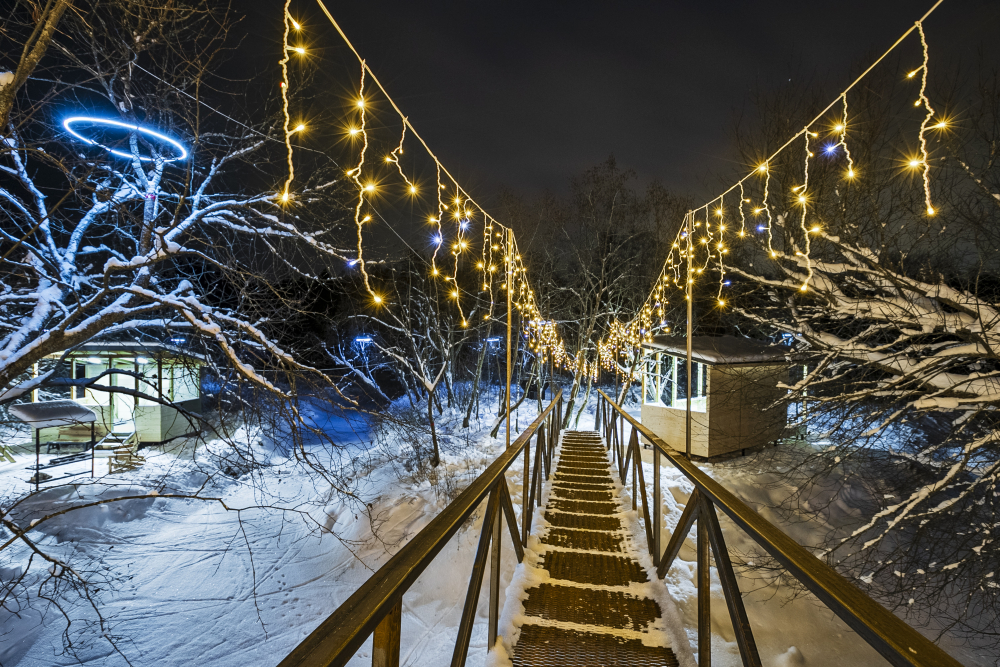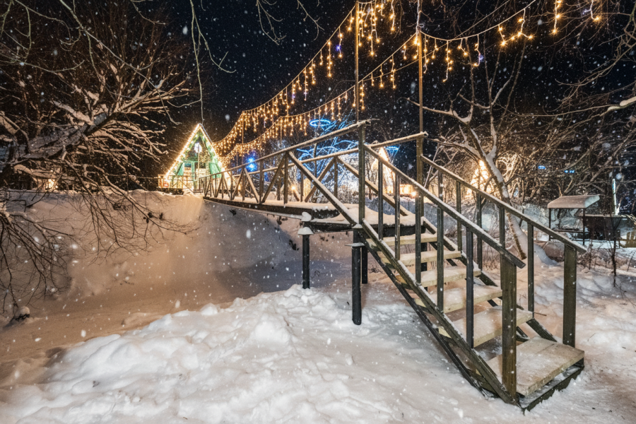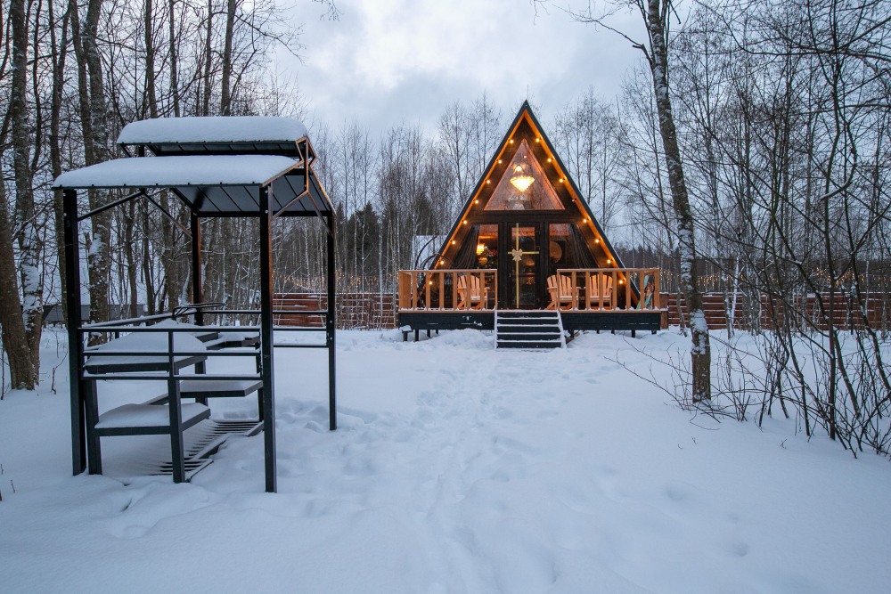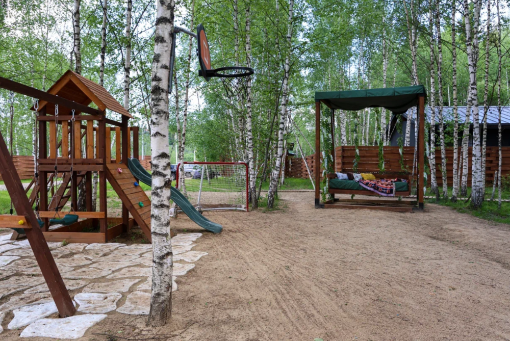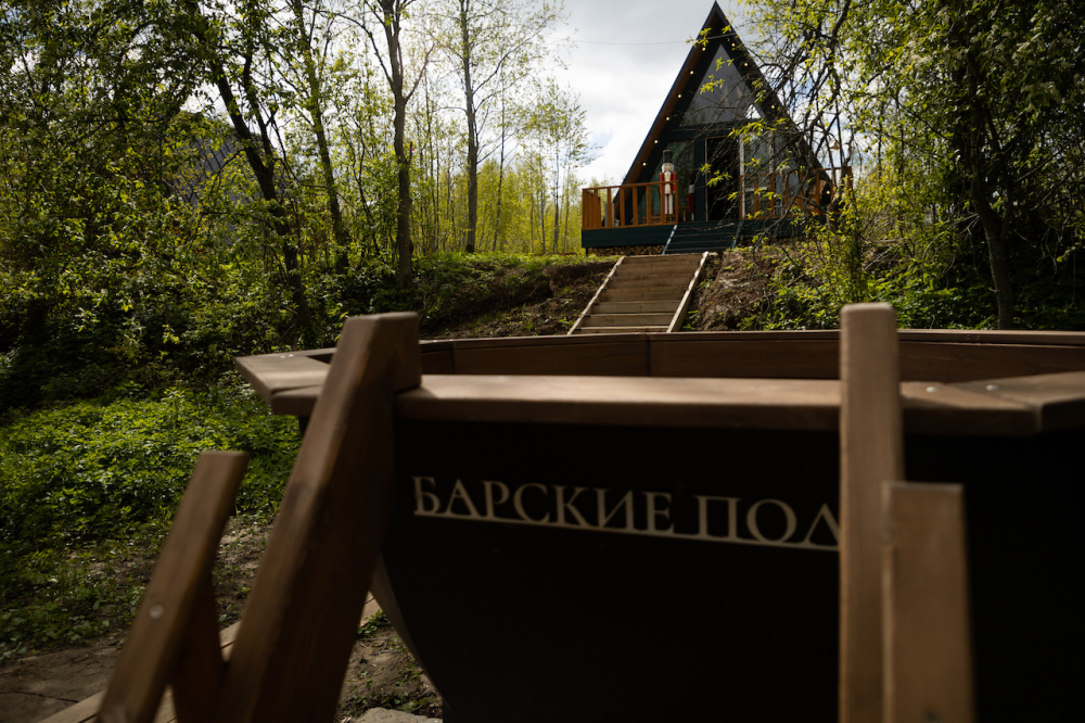 - 14 домов A-frame , каждый со своей территорией, а у многих — свой банный чан или баня*.
