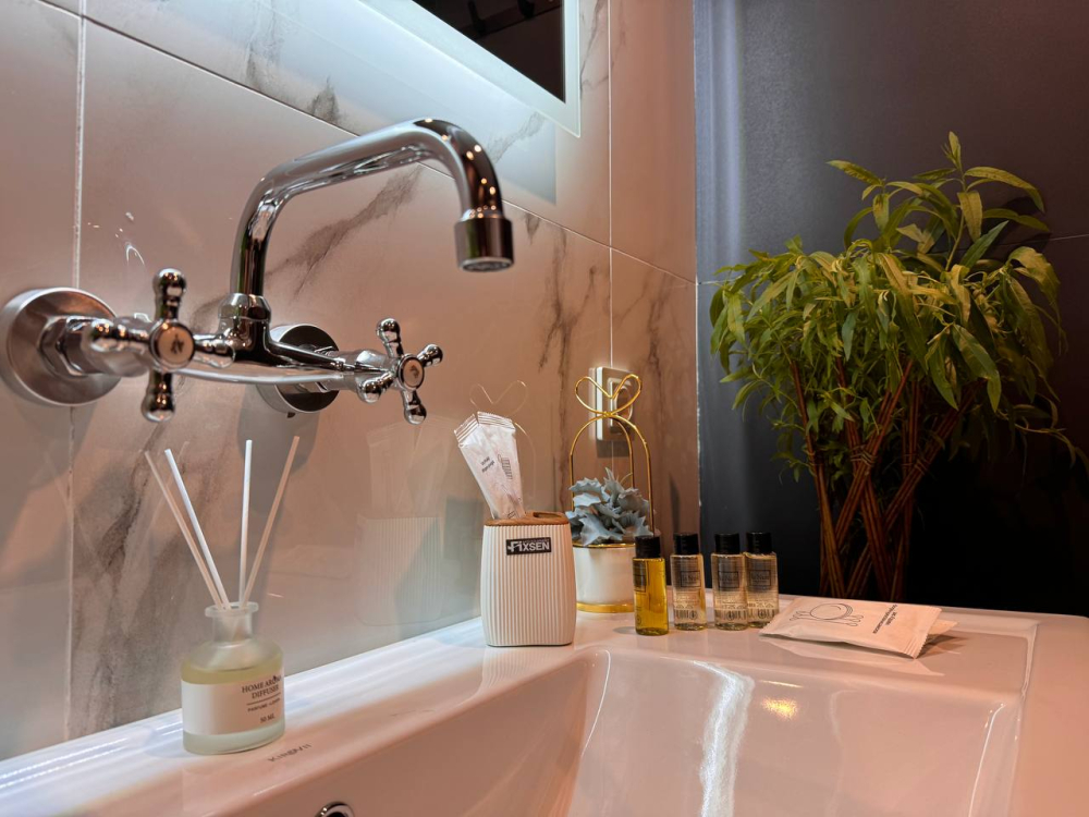 - Полный комплект полотенец, зубные щётки, гель для душа, шампунь и фен.