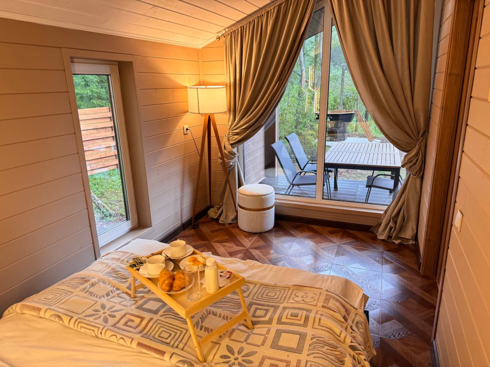 - Вкусные завтраки, обеды и ужины — можно заказать у администратора или через QR-код в каждом домике