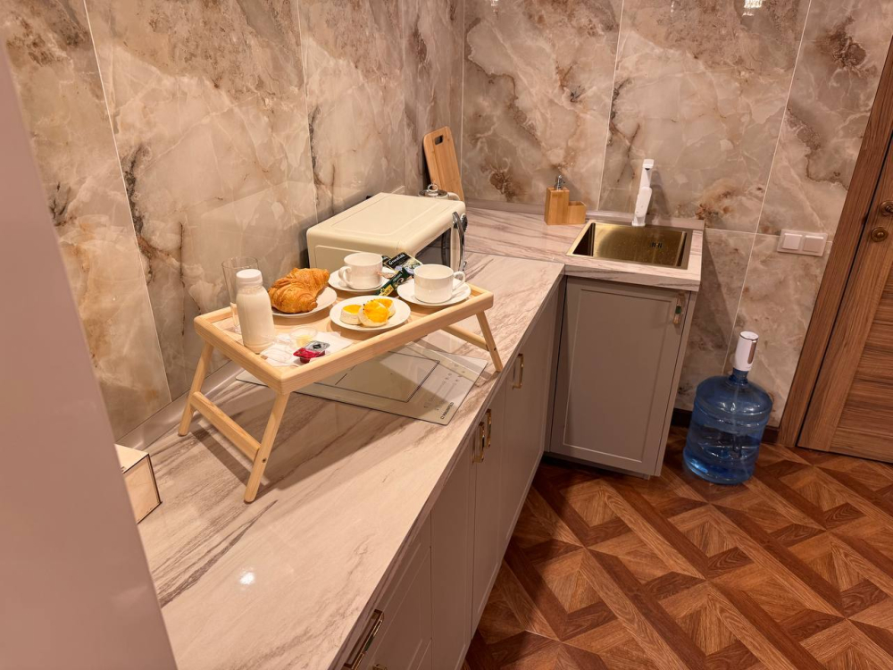 - Полностью оборудованная кухня с необходимым оборудованием и посудой.