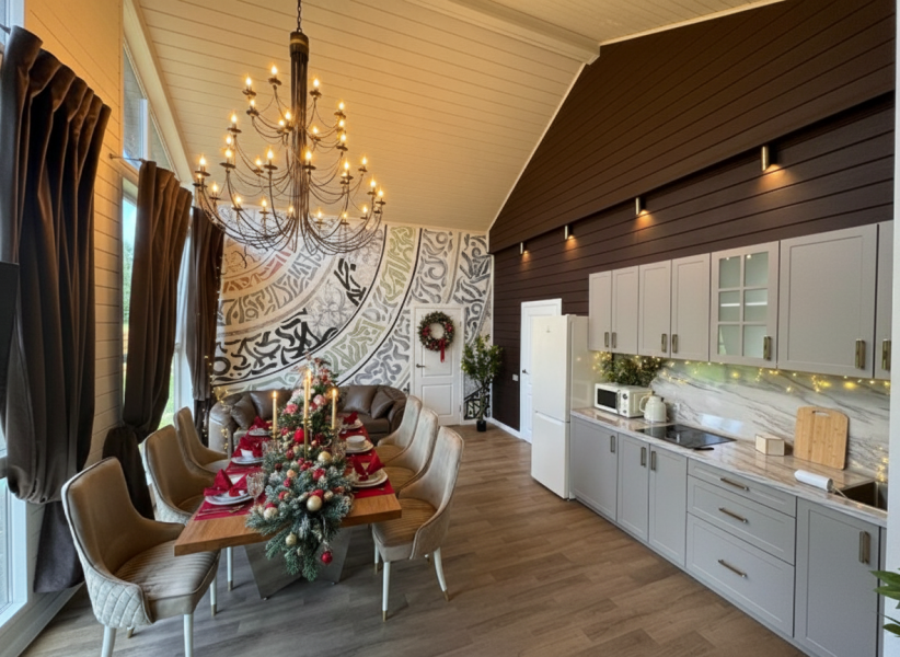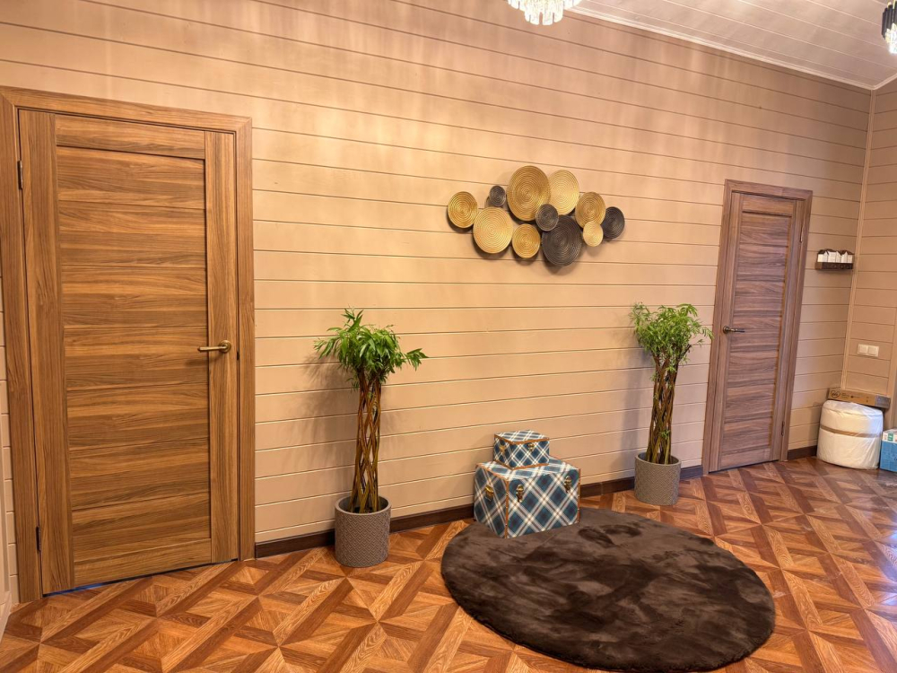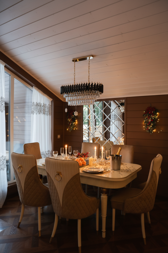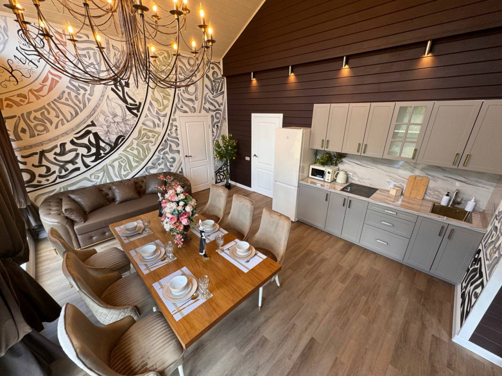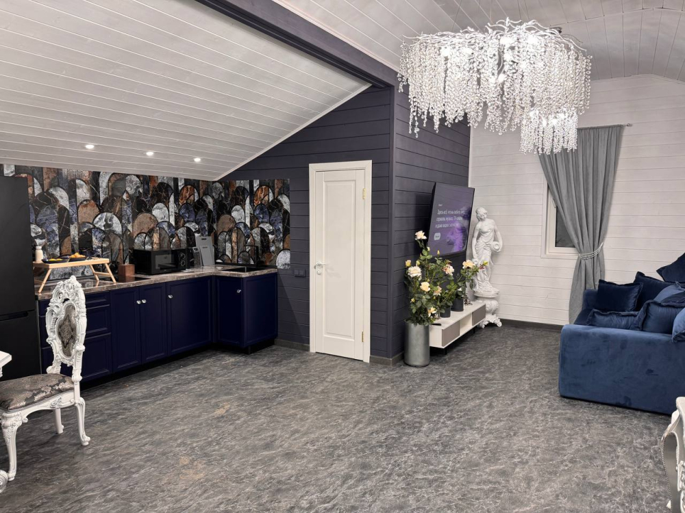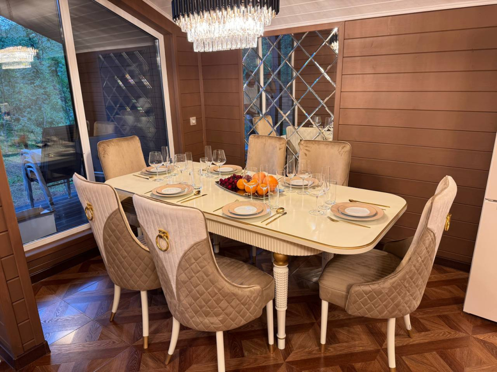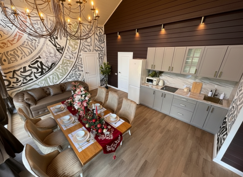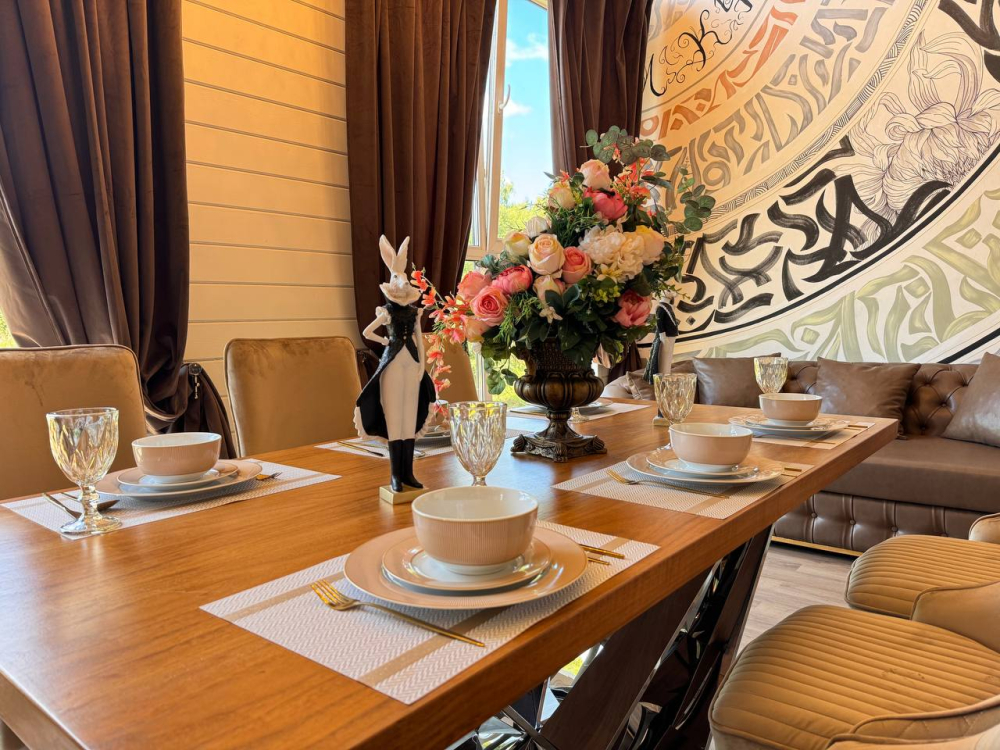 - Барский дом с баней*, мангальной зоной и большим обеденным столом — идеальный выбор для семейных праздников или отдыха с друзьями.