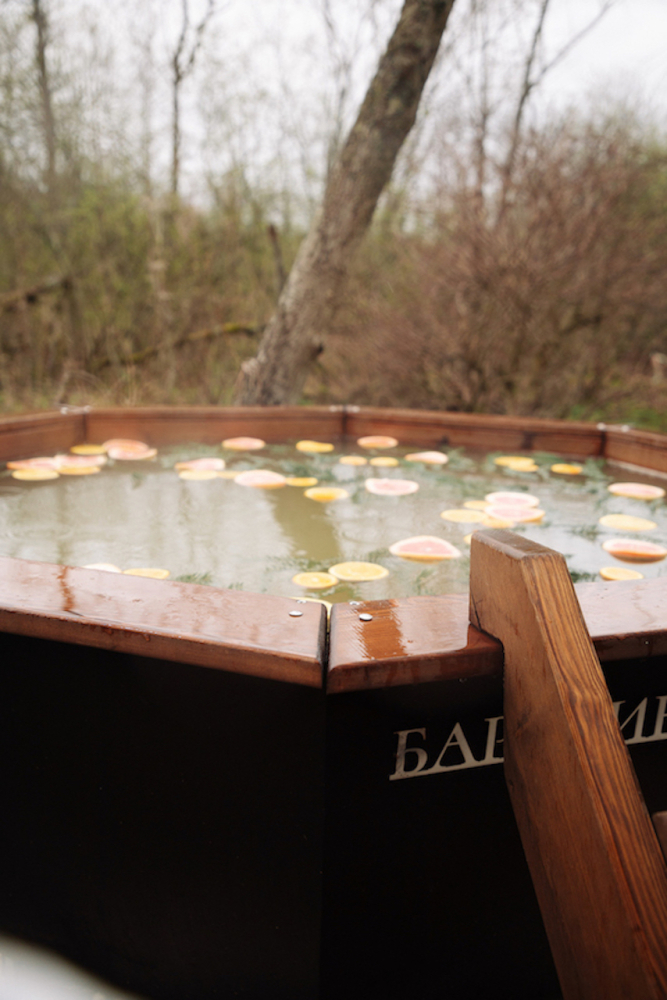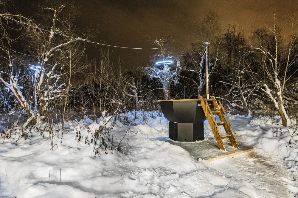 - Горячий чан под открытым небом — от 5000 руб. Возможные добавки для чана: еловое, елово-цитрусовое, молочно-цитрусовое и другие — уточняйте у менеджера.