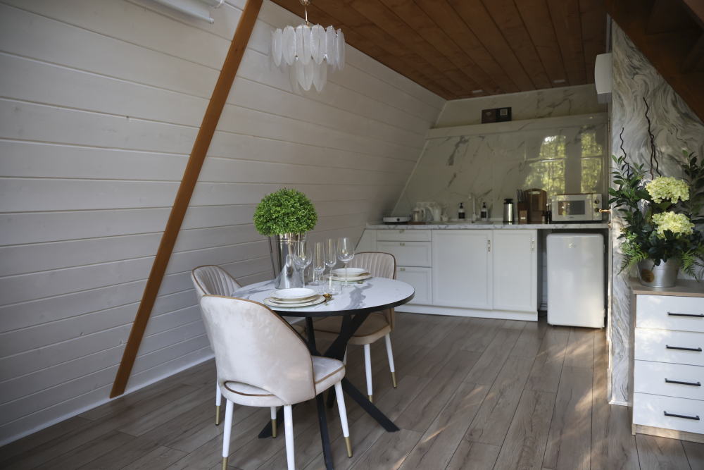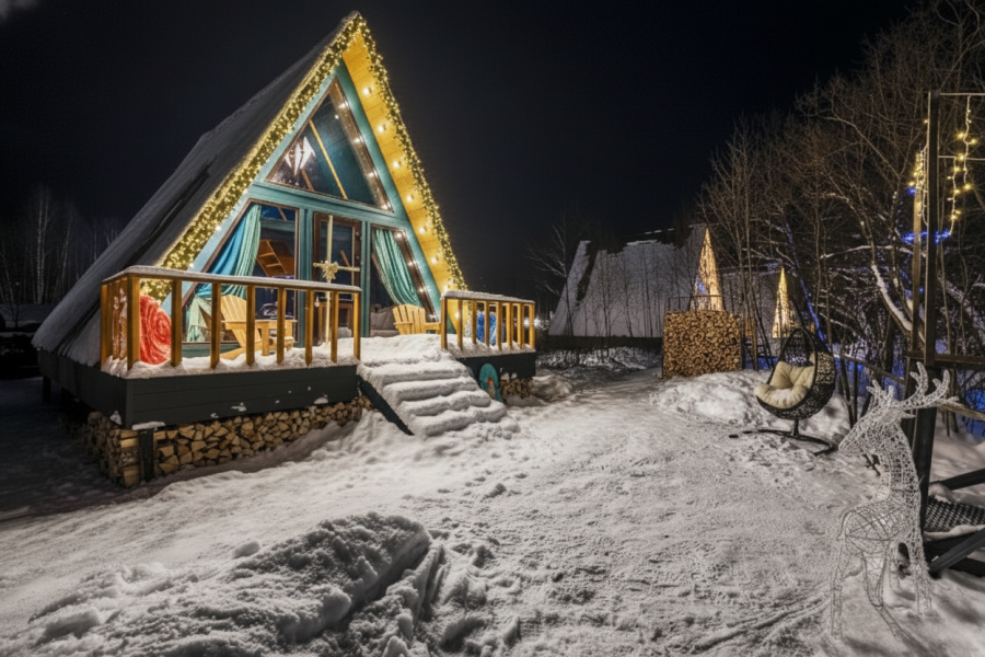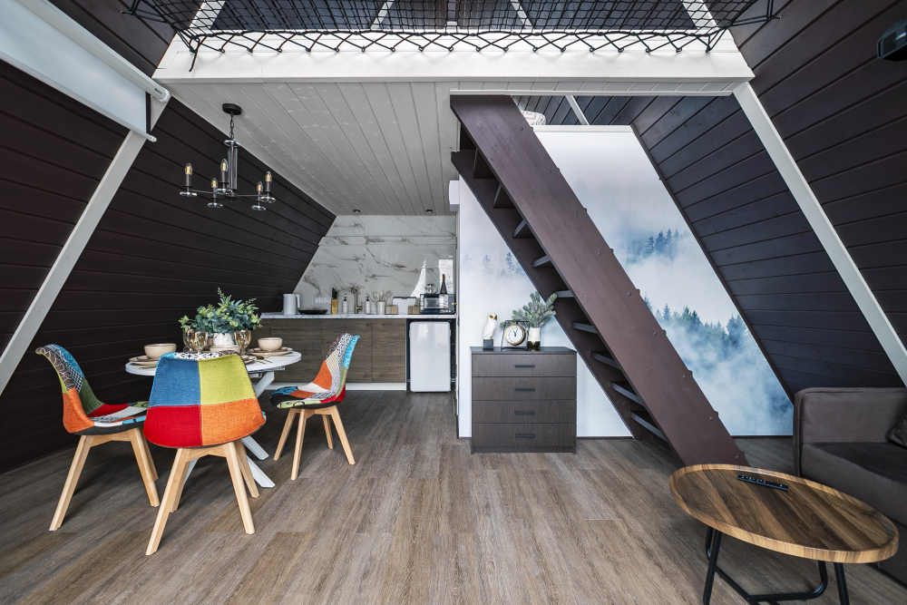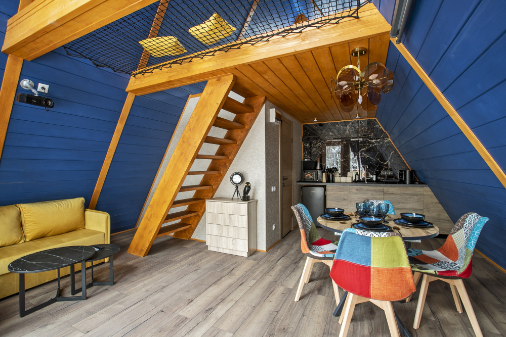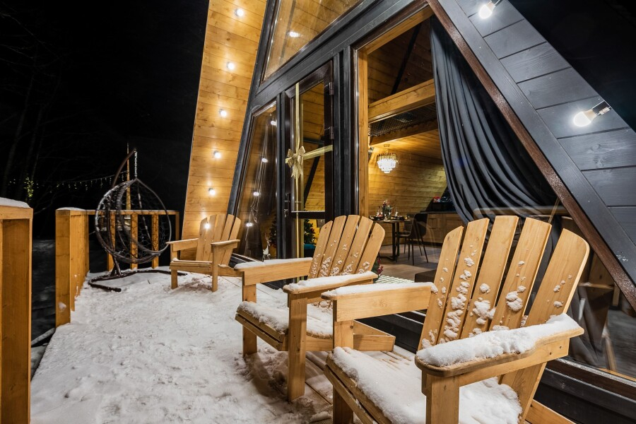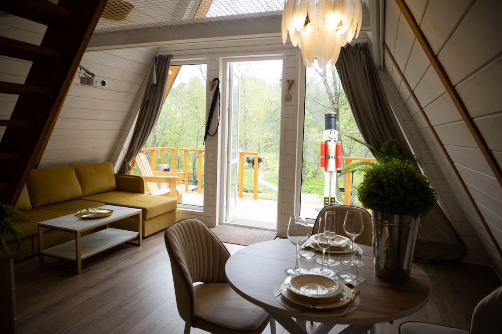 Вас ждет 14 уютных домов А-образной формы и несколько необычных ландшафтов с просторной территорией. Каждый дом имеет современный интерьер и полностью оборудован для комфортного проживания.
