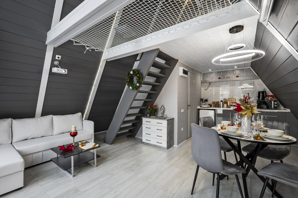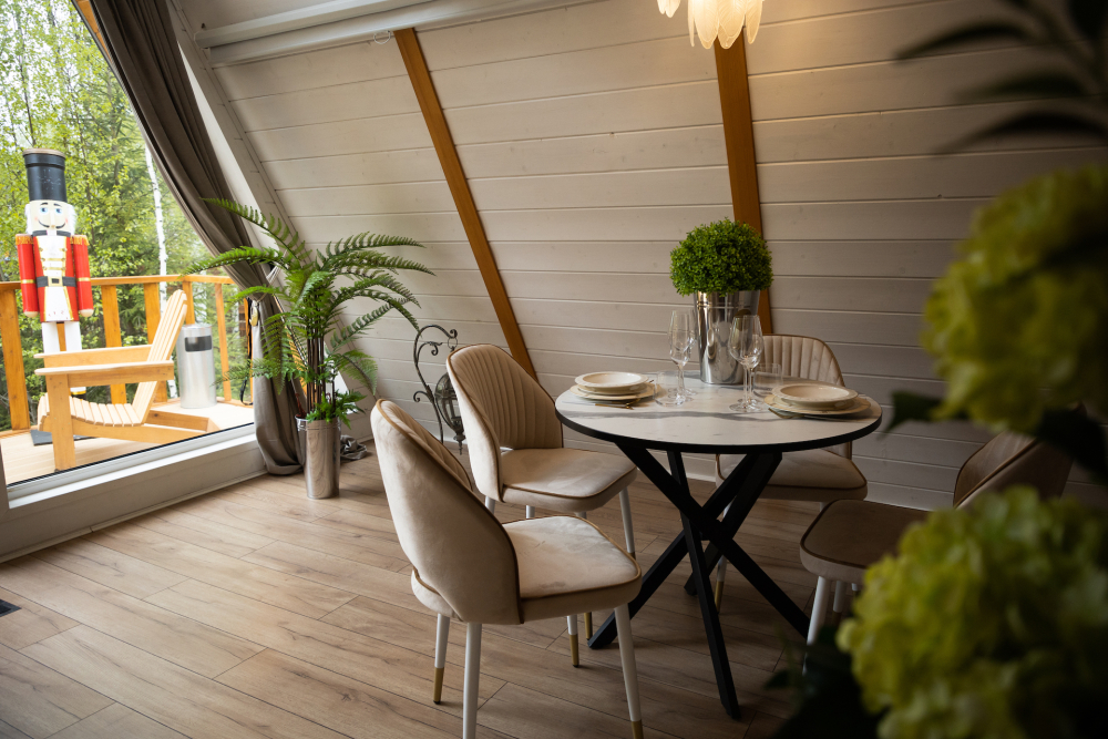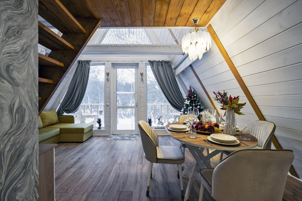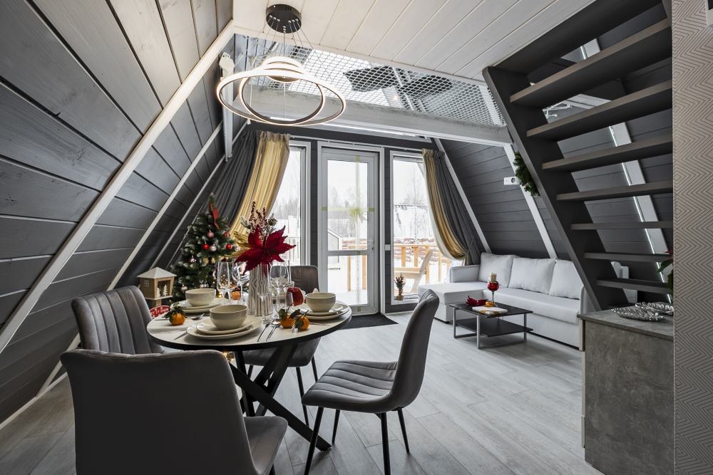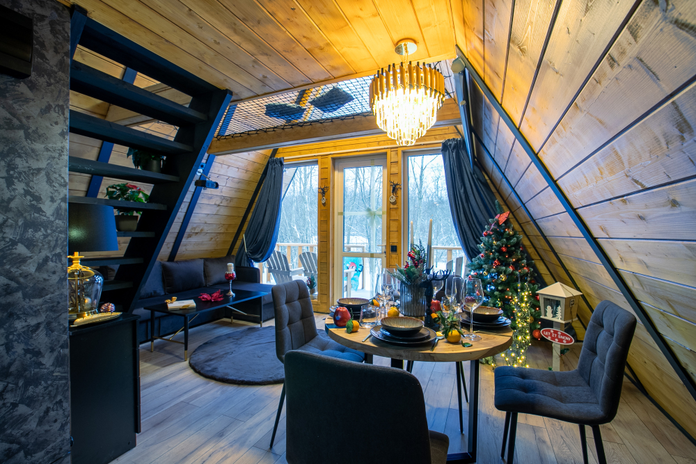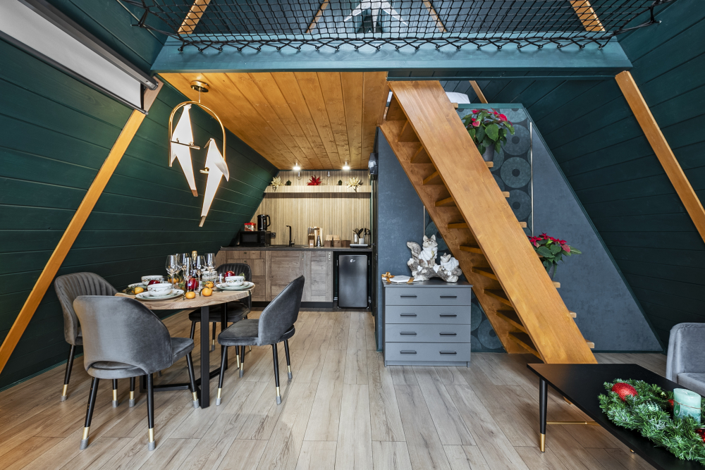 Вас ждет 14 уютных домов А-образной формы и несколько необычных ландшафтов с просторной территорией. Каждый дом имеет современный интерьер и полностью оборудован для комфортного проживания.
