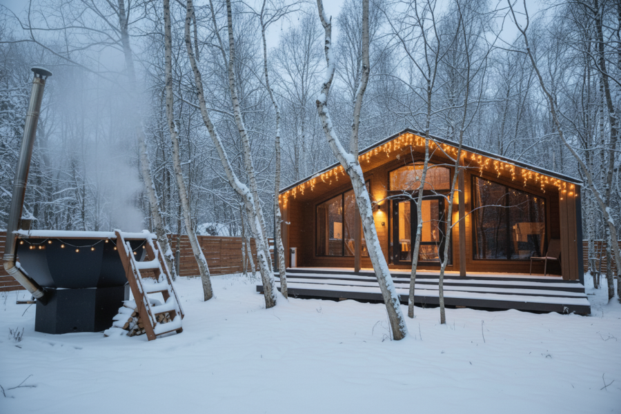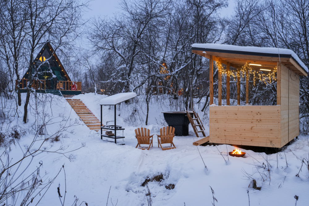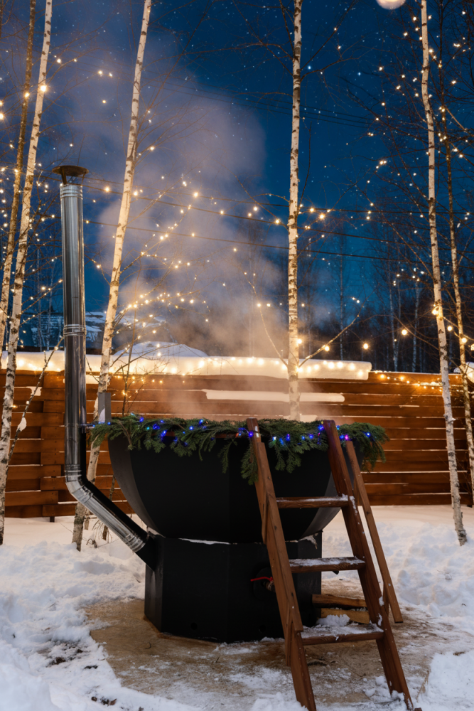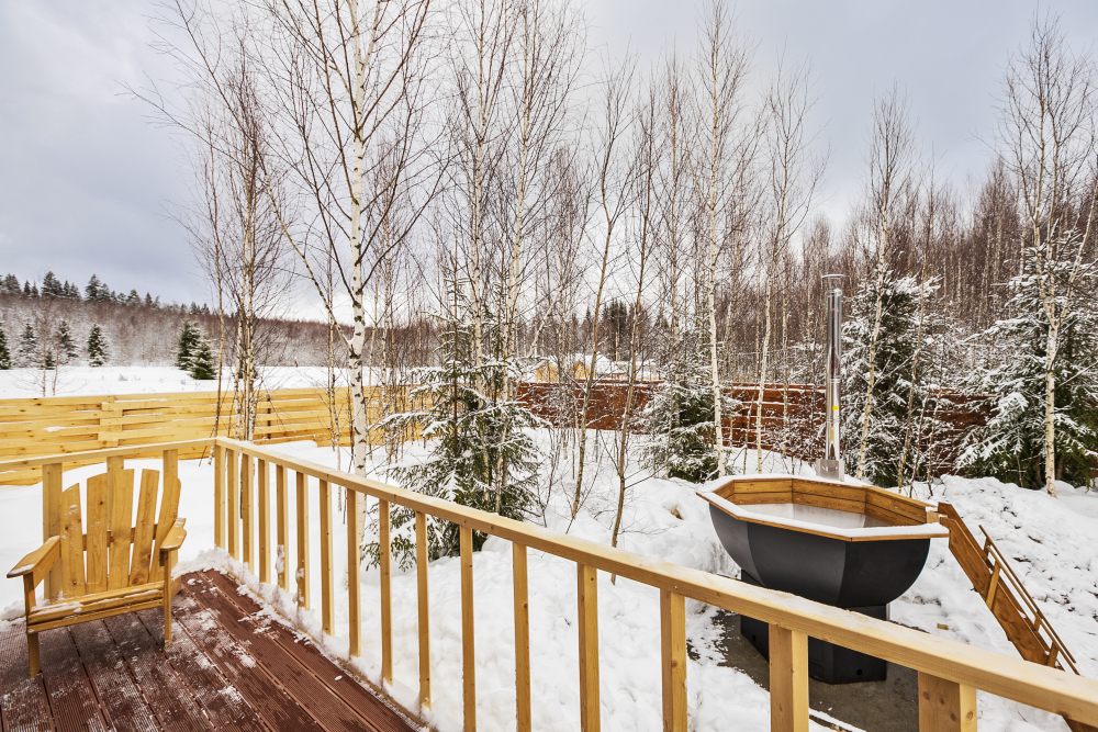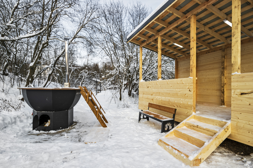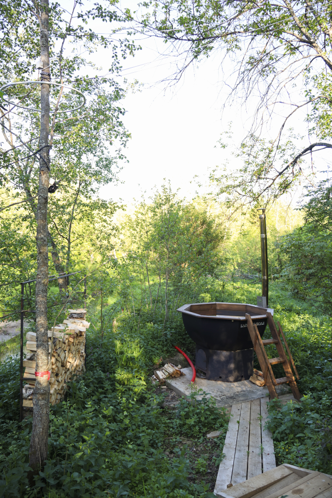 - Баня и горячий чан ** на открытом воздухе — ароматы цитрусов и хвои для максимального расслабления