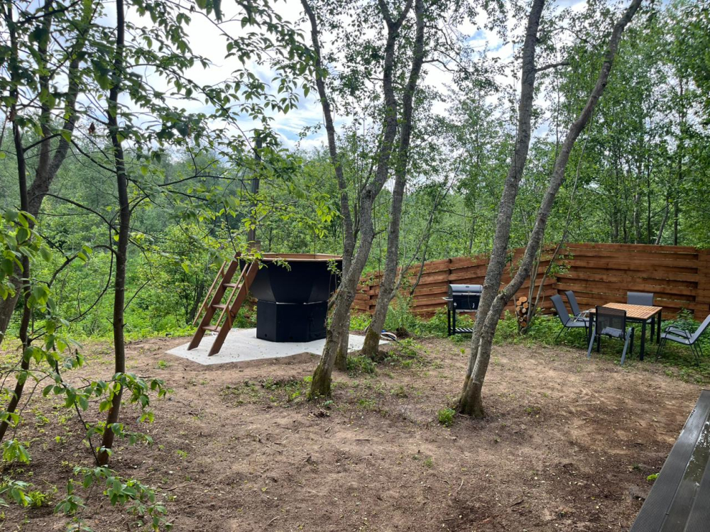 Горячий чан есть около домиков River 1, River 2, River 3, River 4, River 5, River 6, Garden 3, Garden 4, Garden 5 , Garden 1, Barnhouse 1, Barnhouse 2, Барский дом.