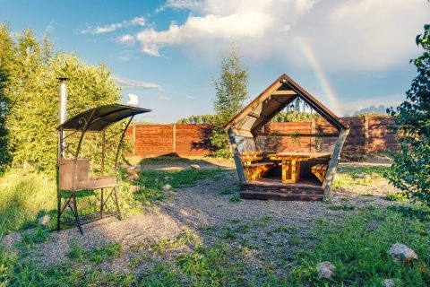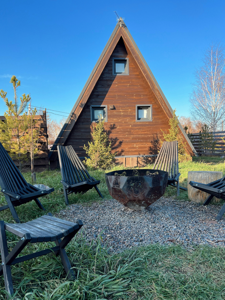 Завораживающий резной мангал в виде зверя у каждого домика. Вечером вы можете насладиться теплом у костра с костровой чашей.