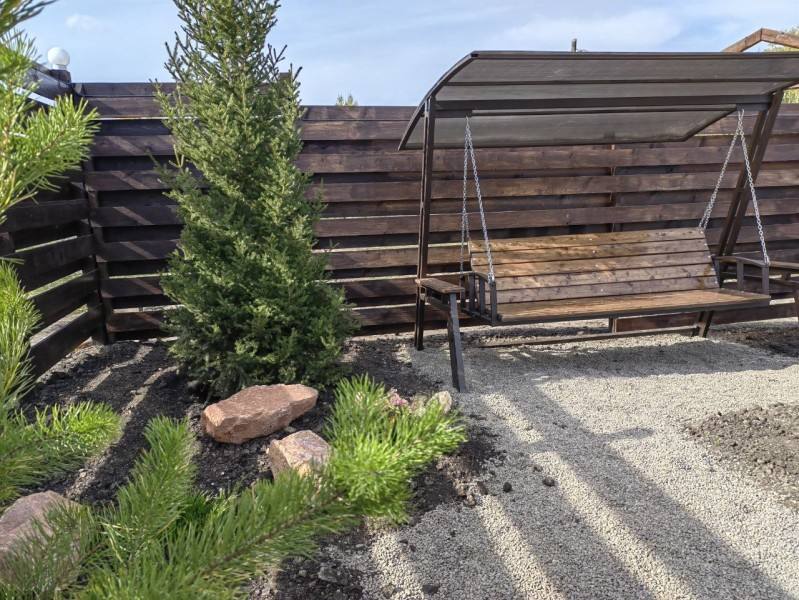 Костровая чаша — Отличное место возле домика, где можно посидеть в деревянном кресле закутавшись в плед и безопасно погреться у костра