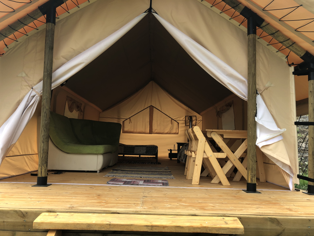 Шатры люкс: Все те же удобства, включая панорамный вид, плюс возможность дополнительных спальных мест.
