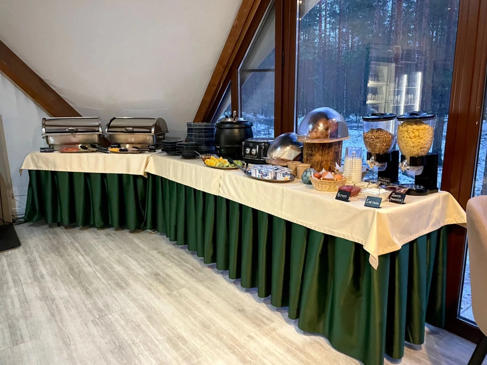 На территории находится кафе. Завтрак: с 9:00 до 11:00, стоимость — 800 руб. на человека.