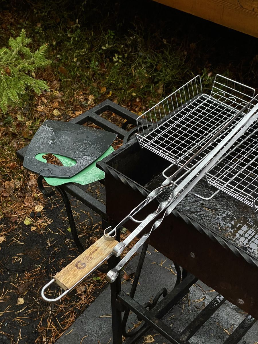 В каждом домике есть мангальная зона, где вы можете бесплатно воспользоваться мангалом. Остальные принадлежности для барбекю необходимо привезти с собой или взять в аренду у нас на весь период проживания: набор за 1 000 руб., включающий шампура, решетку и опахало, или набор за 2 000 руб., в который входят уголь 14 л, розжиг, шампура, решетка и опахало.