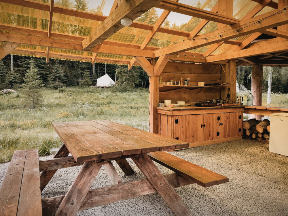 У каждого шатра предусмотрена собственная мангальная зона. Мангал и шампуры предоставляются бесплатно, а остальные принадлежности необходимо брать с собой.