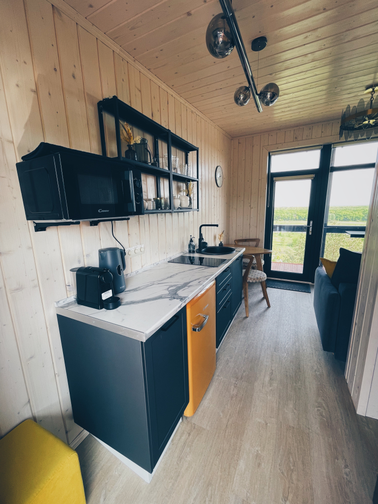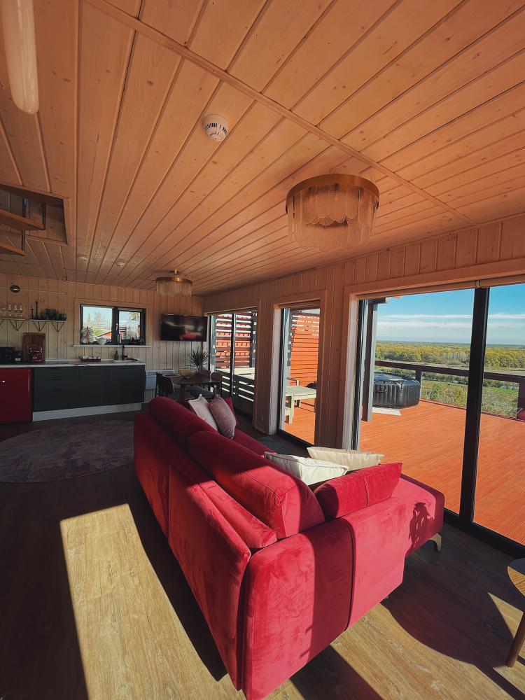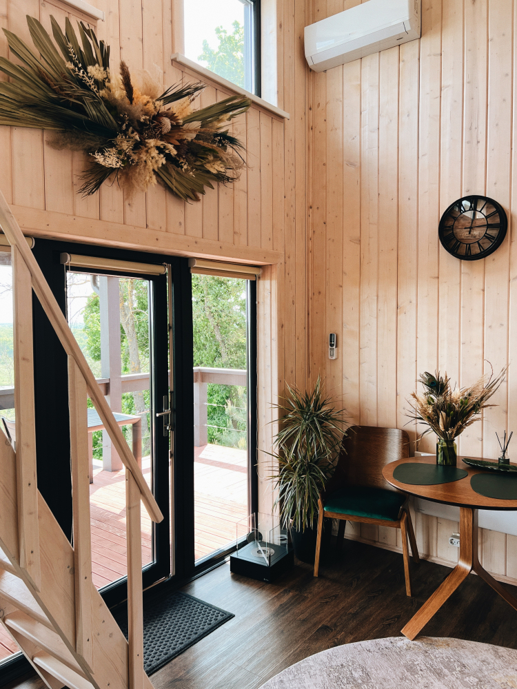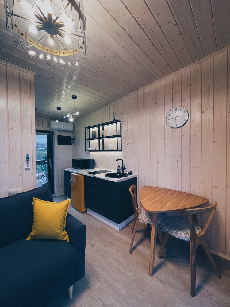 Для проживания предлагаются 4 коттеджа с панорамными окнами и современным интерьером. В каждом коттедже есть всё необходимое для комфортного проживания: фен, Wi-Fi, телевизор, средства личной гигиены, тапочки, а также полностью оборудованная кухня с бытовыми приборами и набором посуды. На террасе обустроена зона для барбекю.