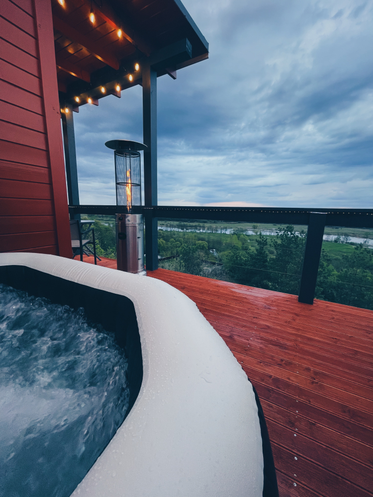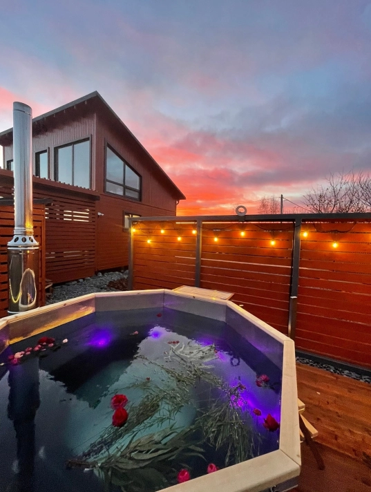 Дополнительно можно арендовать в летнее время года джакузи с гидромассажем. Температура воды в чане около 38 градусов, в джакузи около 34 градусов.