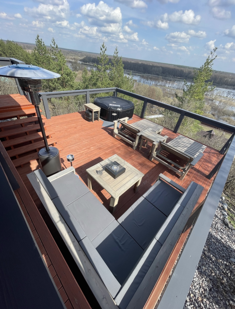 Террасы и джакузи : В летнее время террасы оборудованы системами туманообразования, а зимой — газовыми отопителями и биокаминами.