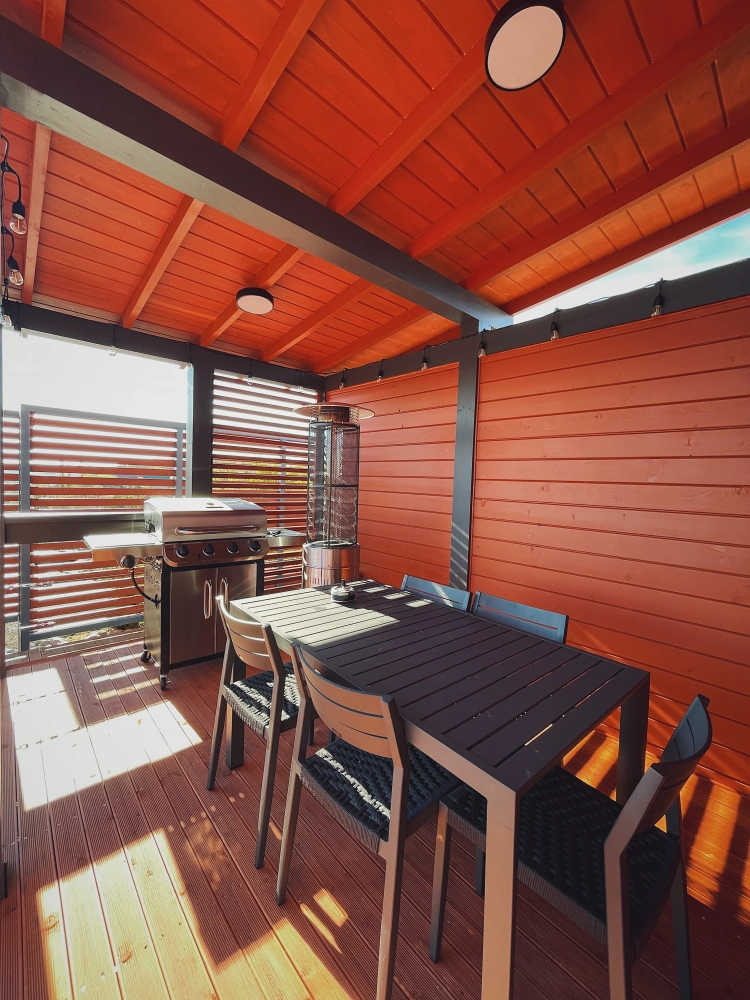 В стоимость дома входит профессиональный газовый гриль, все необходимое имеется в домике.