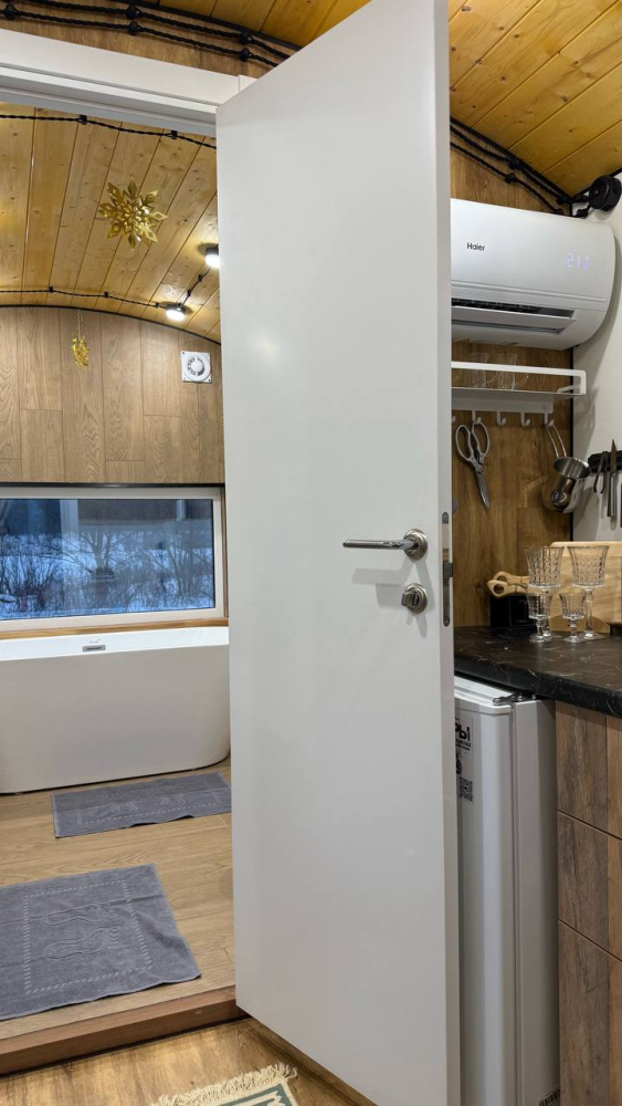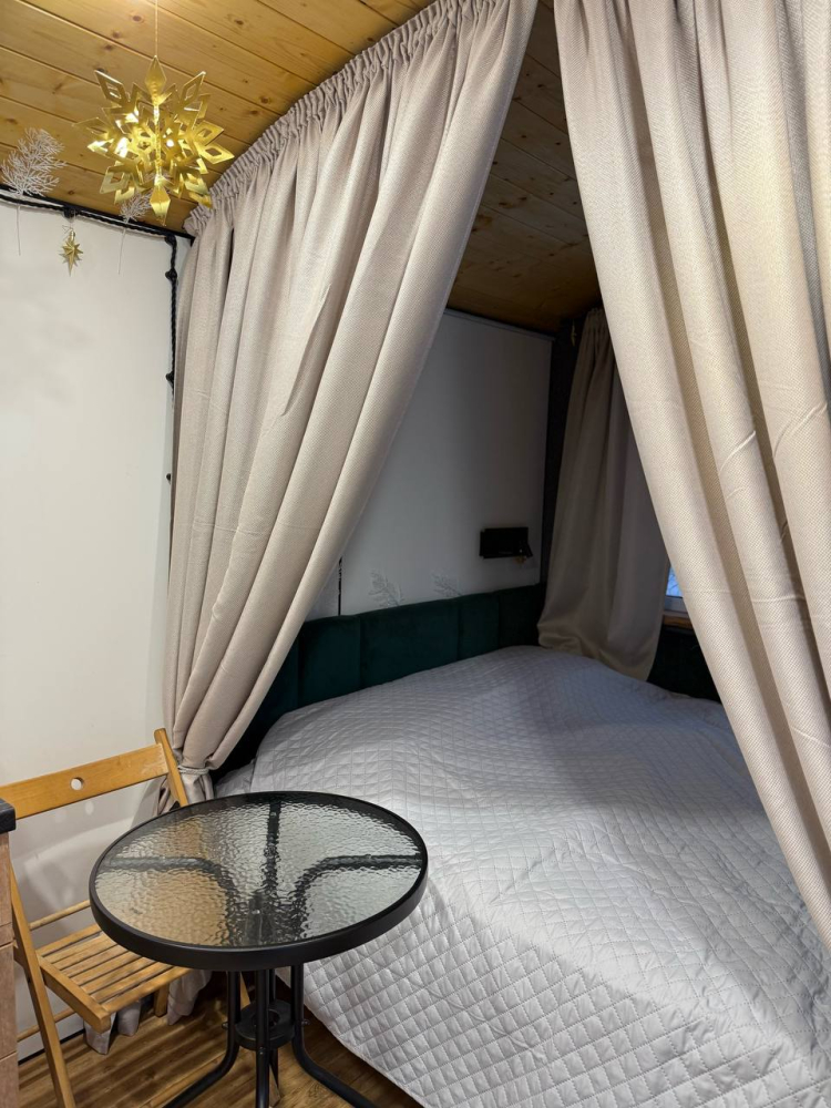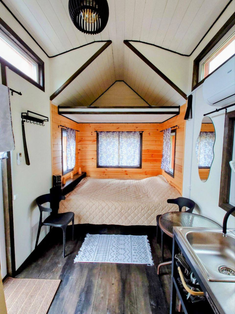 Дом Анны: дом с электрической сауной, камином, проектором и высоким потолком, идеален для романтического отдыха или творческой работы. Вместимость: до 6 человек.