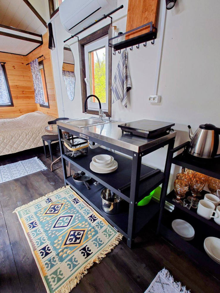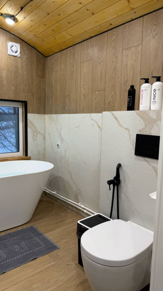 Идеальное место для отдыха. Уютные дома размещены на просторных участках в окружении леса, с расстоянием до 70 метров между домами, что обеспечивает приватность. У каждого дома есть баня на дровах или фурако.