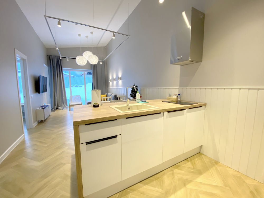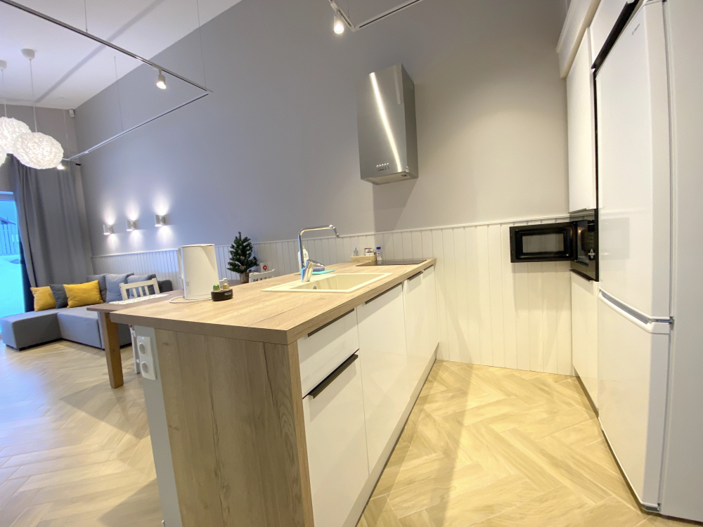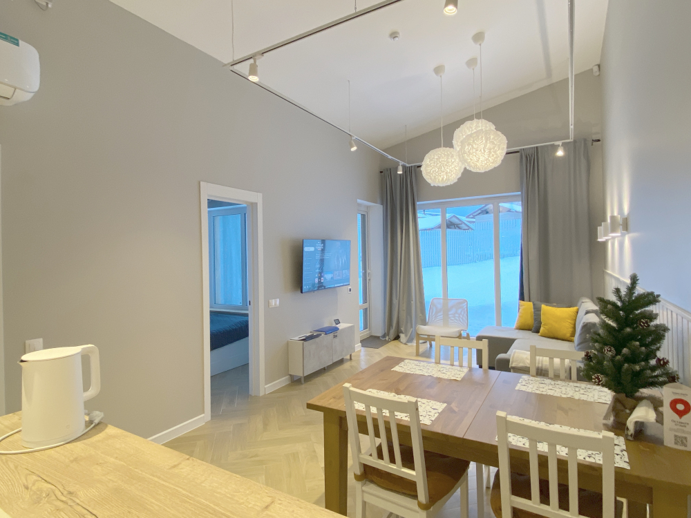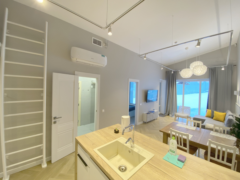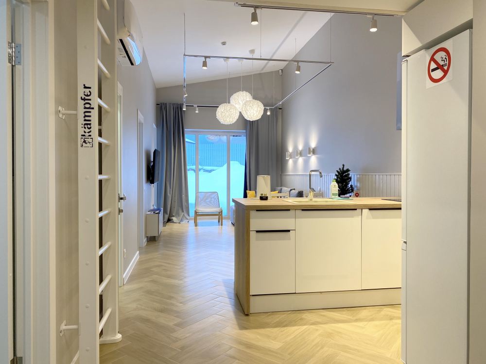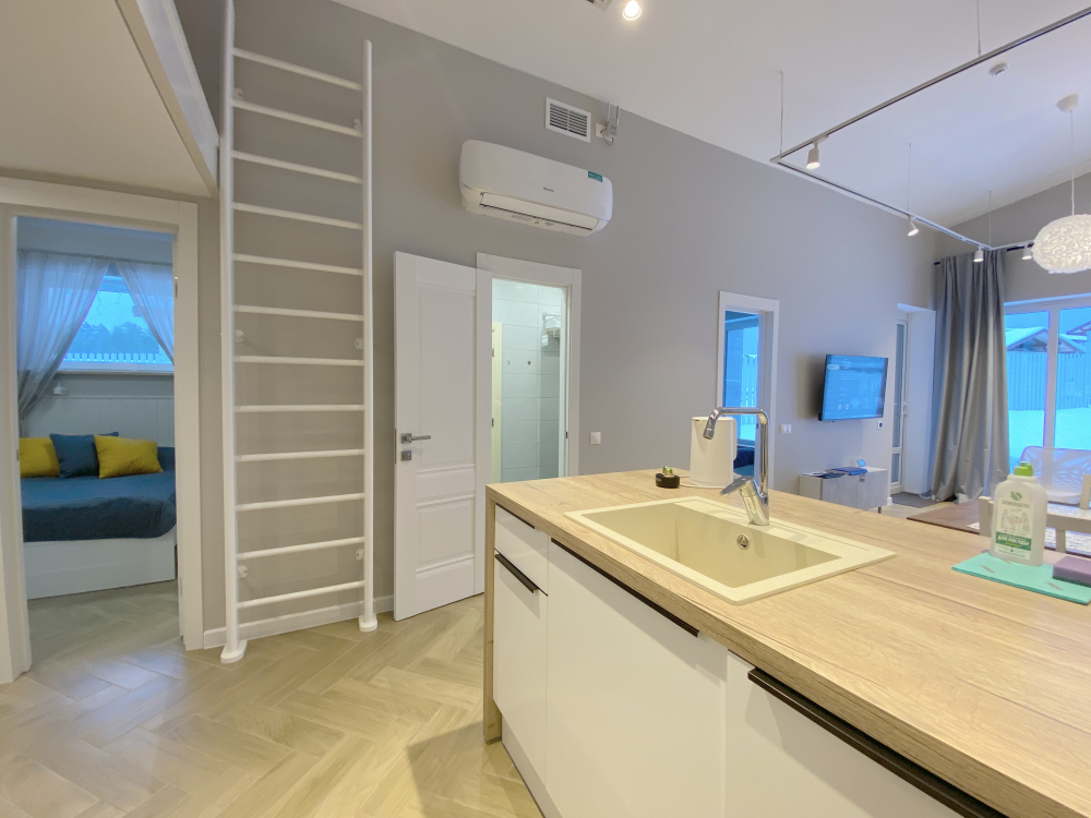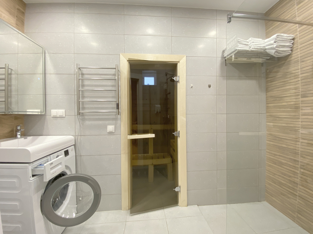 В каждом апартаменте установлена финская сауна. В любое удобное время без ограничений можно погреться, расслабиться.