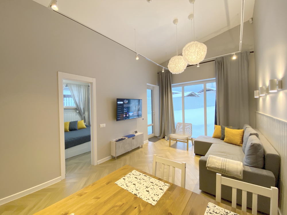 Возвращайтесь в уют своего апартамента с белоснежным постельным бельем и личной сауной.