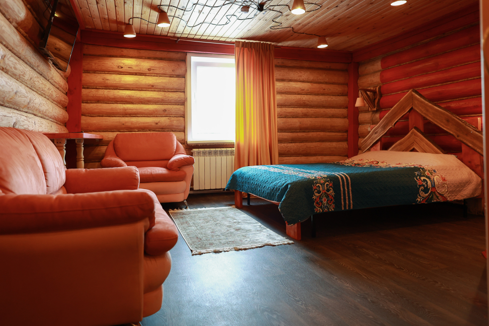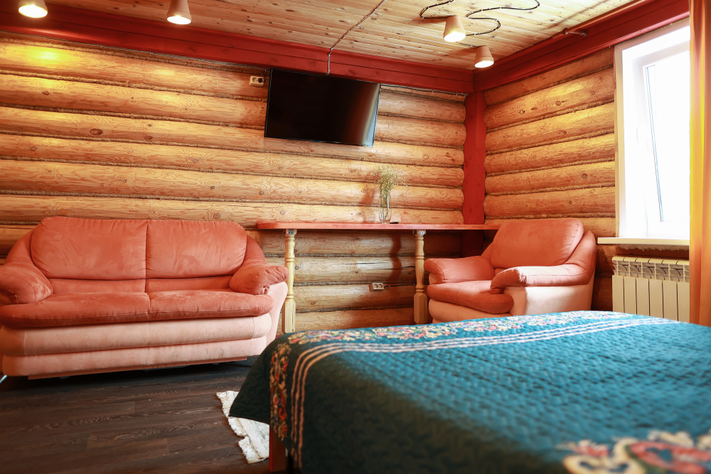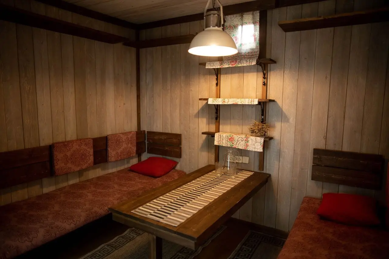 Внутри домиков: Всё необходимое для комфортного проживания.
