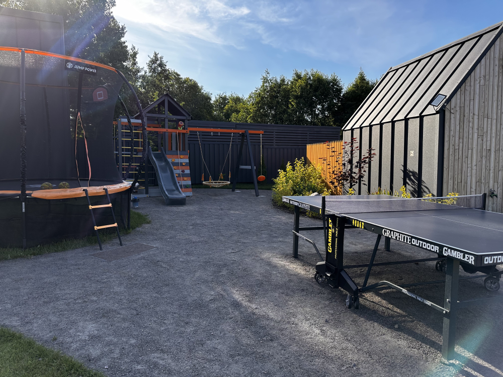 Развлечения: настольные игры, батут, детская площадка, бадминтон, настольный теннис.