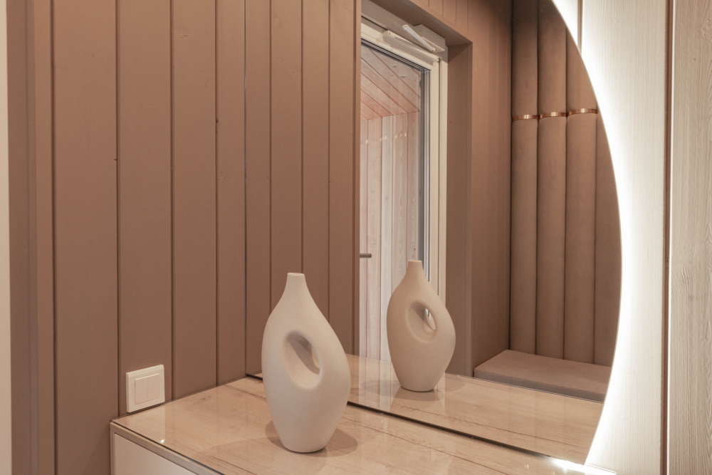 Прихожая: удобная тумба для обуви, трехстворчатый шкаф.