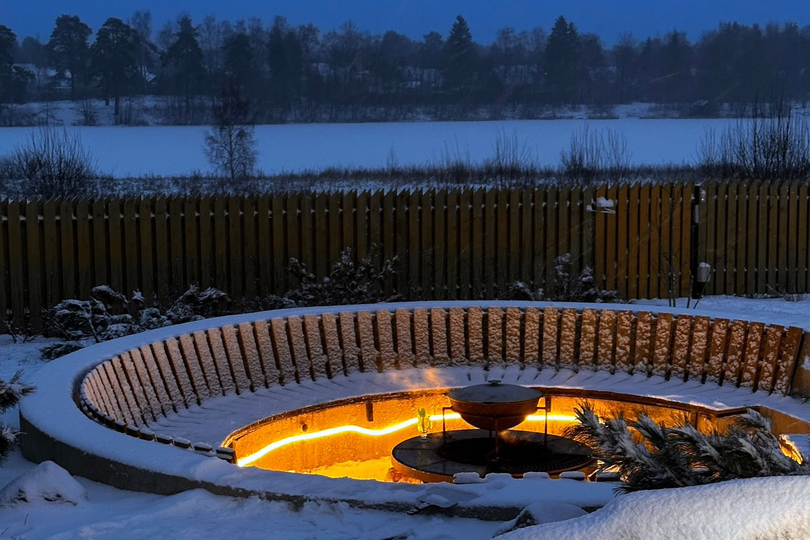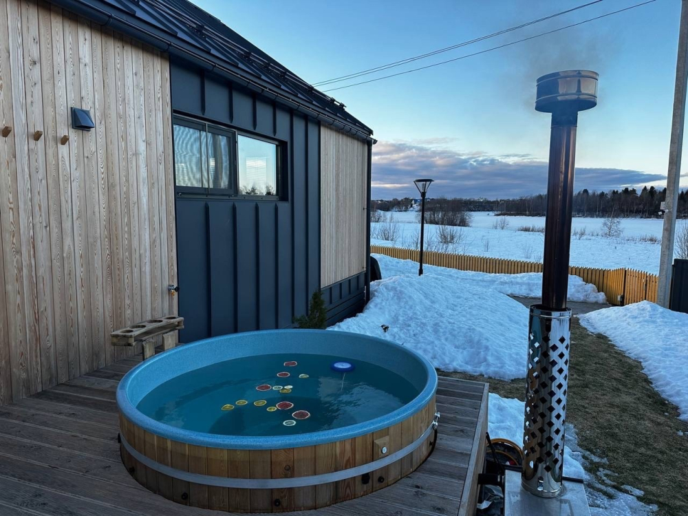 Горячий чан есть около домиков Барнхаус Шоколад-5 с Сауной и Фурако.