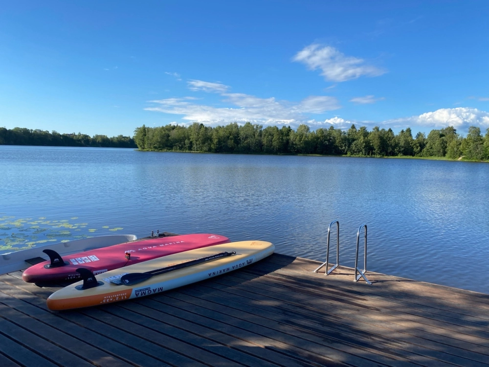 Прекрасная возможность осмотреть панорамные виды окрестности с воды — прокатиться на сап-бордах по живописному озеру Сювеярви.