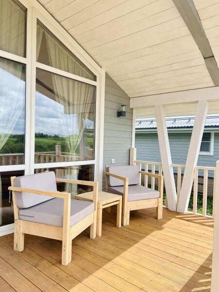Открытая терраса (с мая по октябрь) с мебелью для дневного отдыха, вечерних посиделок и завтраков на свежем воздухе. В зимний период предоставляются стулья-шезлонги.