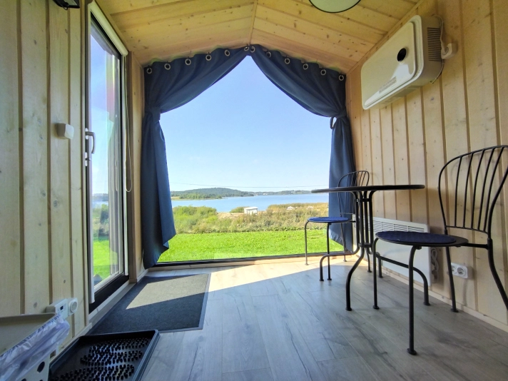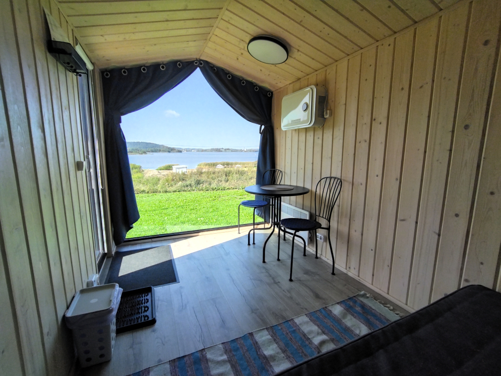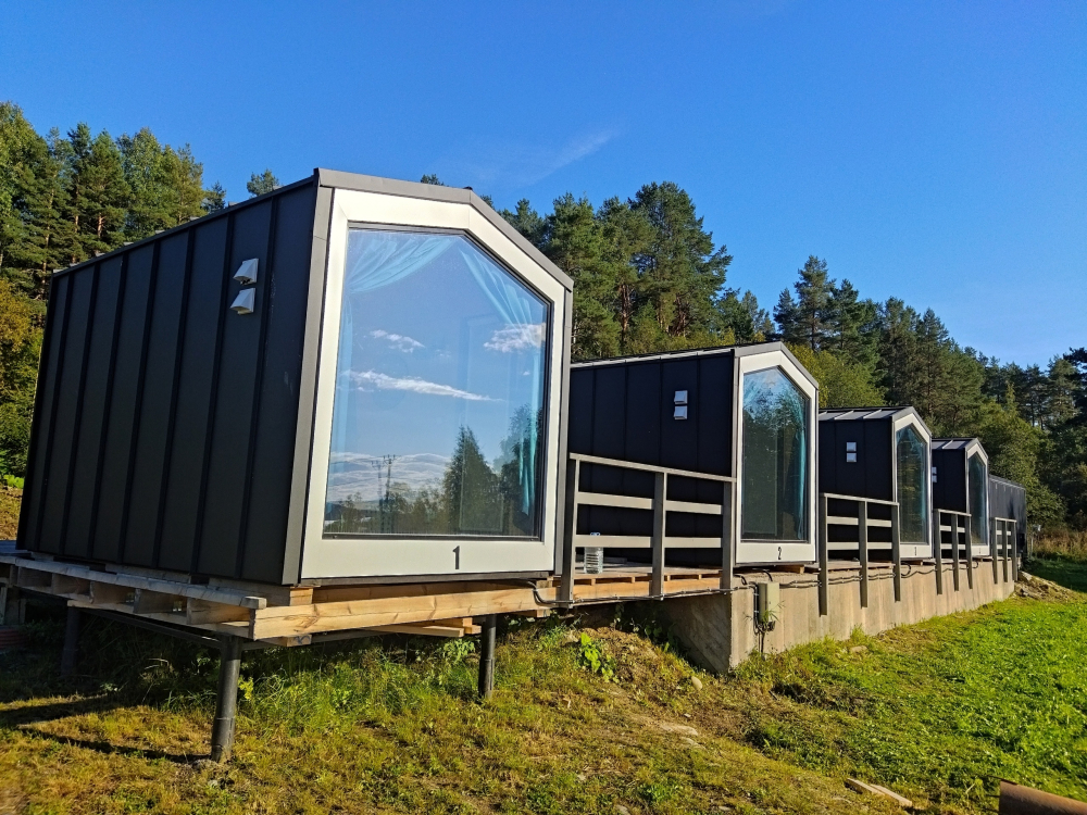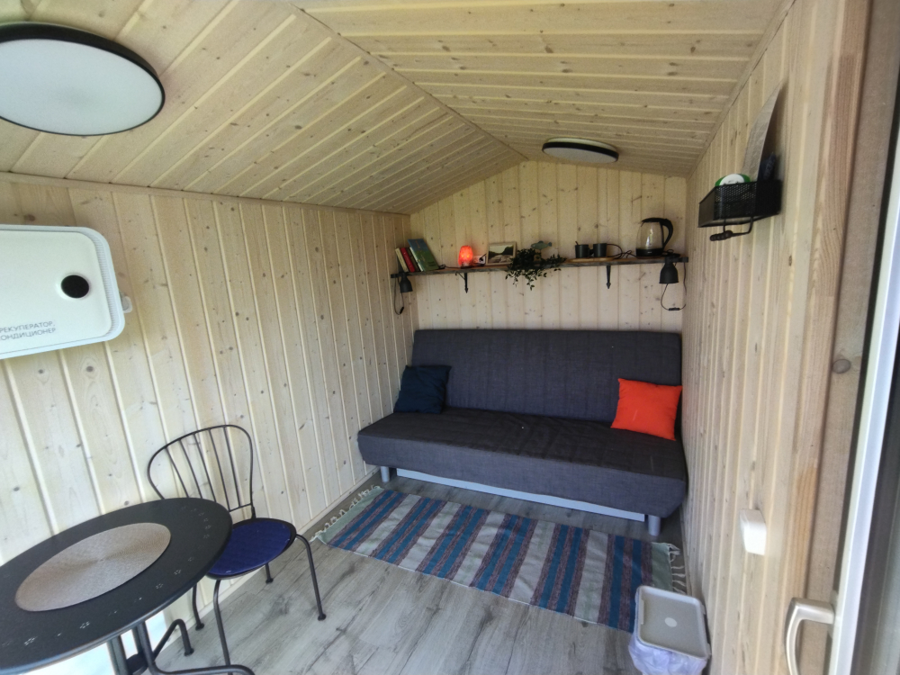 Однокомнатный домик площадью 8 м² с панорамным остеклением, отлично подходит для кратковременного отдыха на природе. Спальных мест — 2: