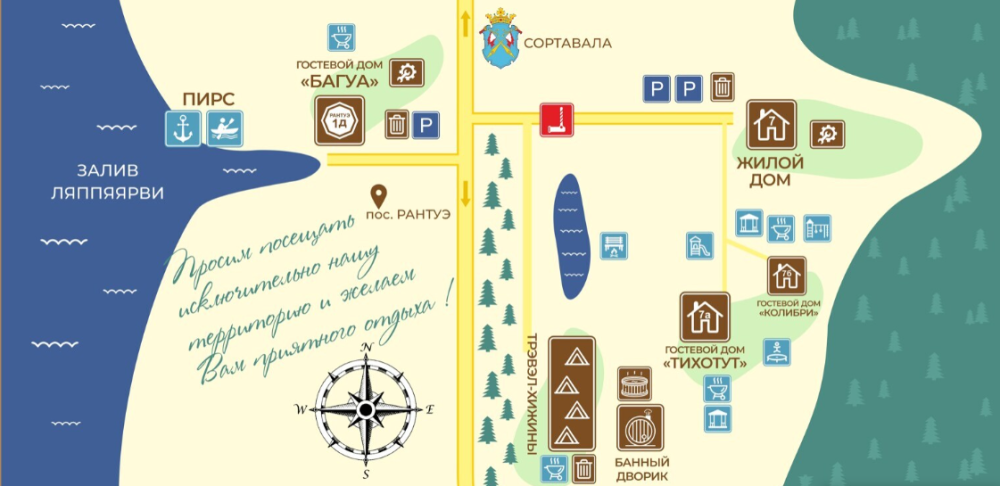 Кемпинг расположен на живописном берегу Ладожского озера, предлагая идеальные условия для отдыха на природе.