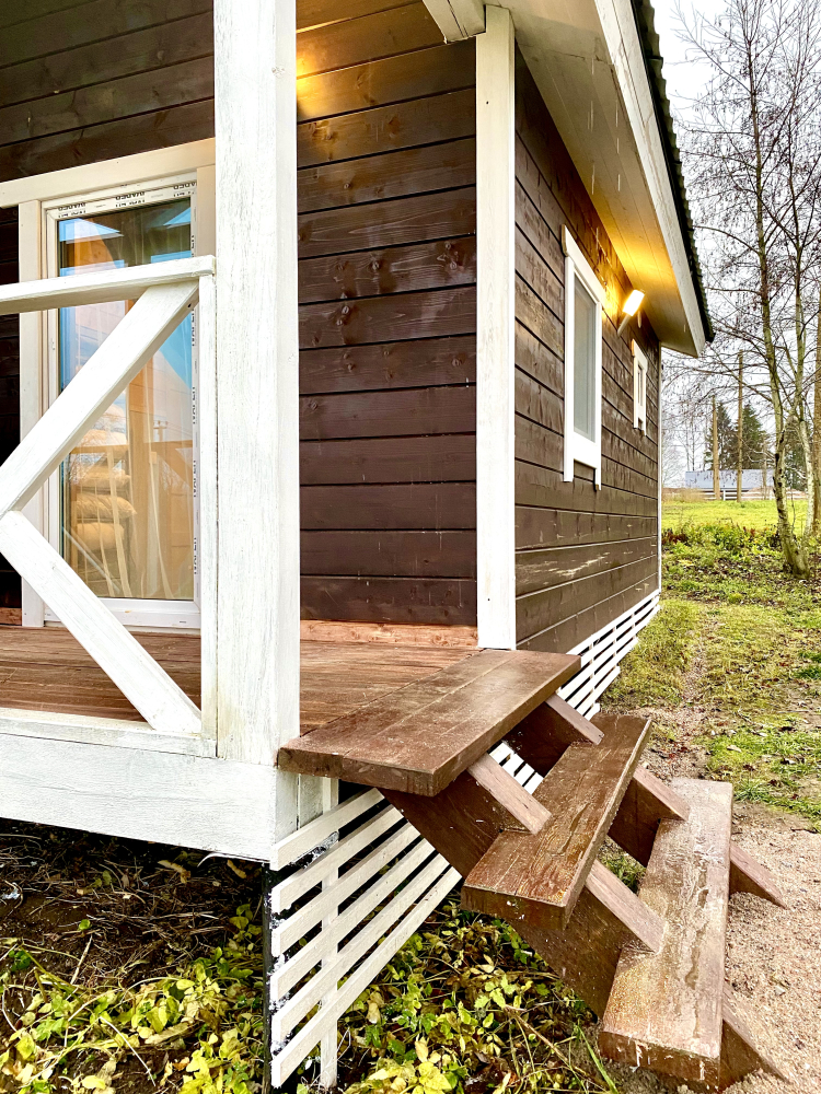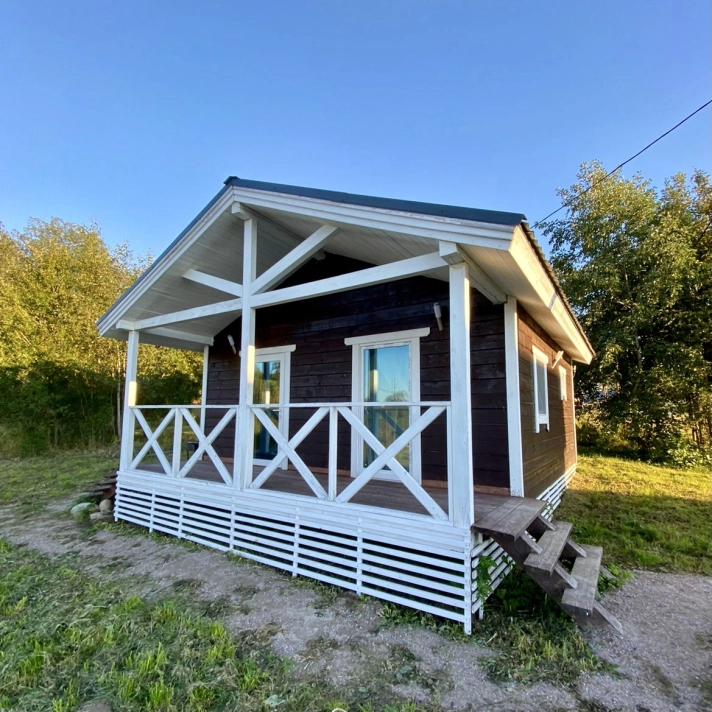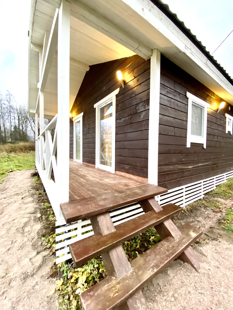 Коттедж находится в 77 км от Санкт-Петербурга и в 2 км от ближайшего озера.